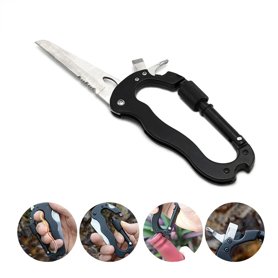 Hebilla de Montañismo multifunción 5 en 1 para exteriores, hebilla colgante rápida, destornillador cruzado, mosquetón, abridor de botellas, abridor de vino
