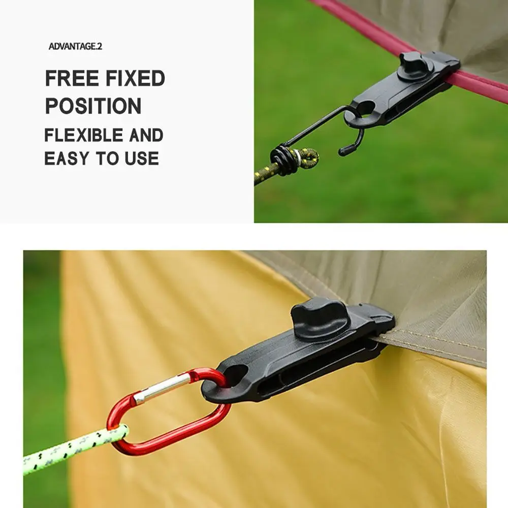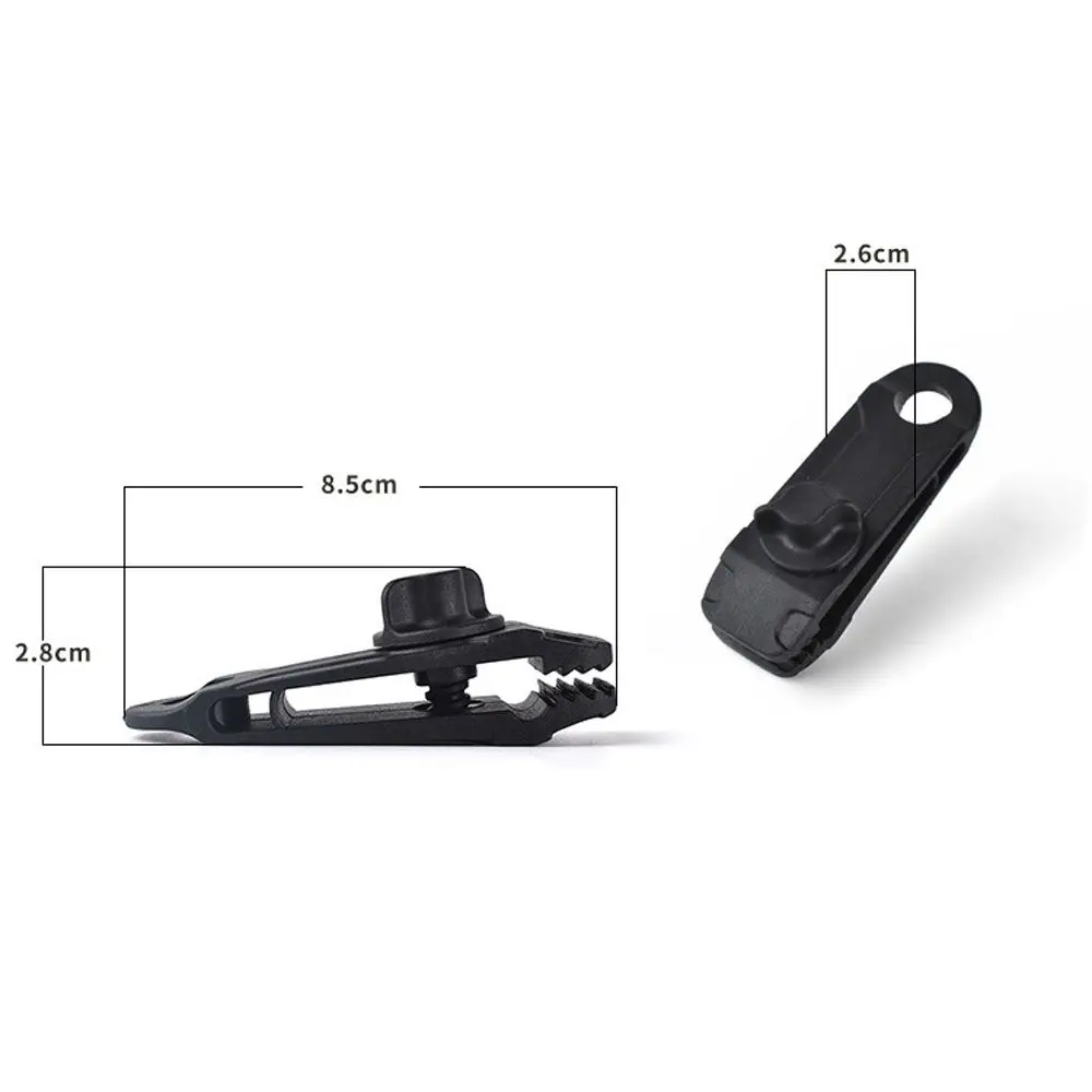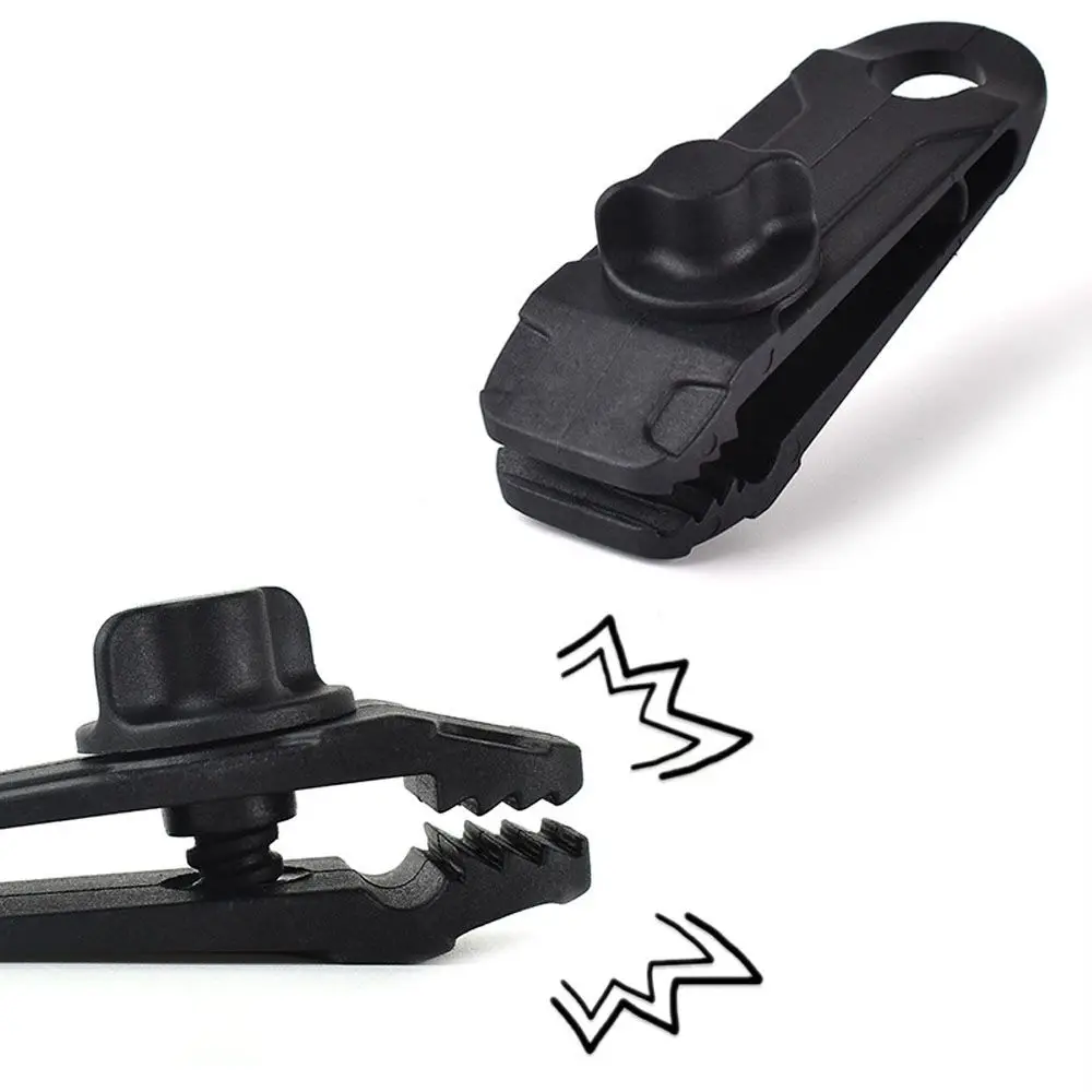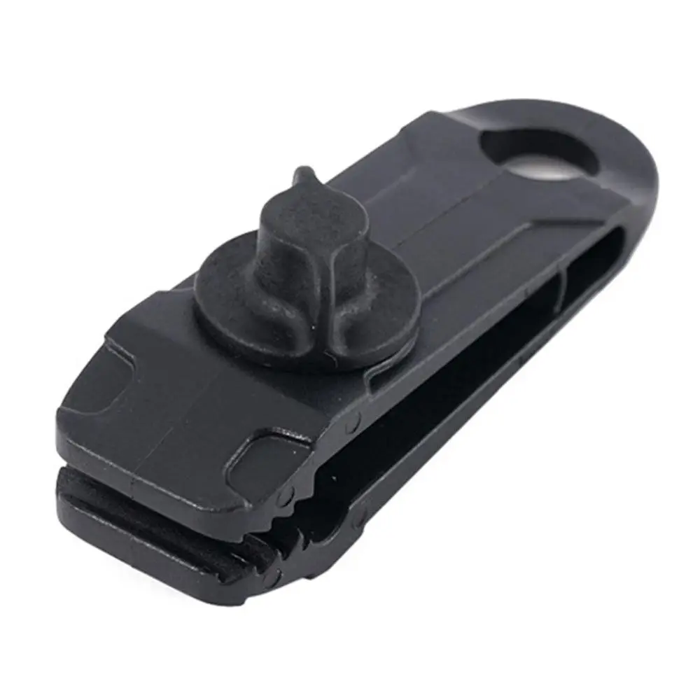 Material: Nailon Tamaño: aprox. 8,5x2,8x2.6cm/3,1x1,1x1,0 in Diámetro del orificio: 1,2 cm/0.5in Color: Negro El paquete incluye: Clips de tienda de 10 Características: Abrazadera de bloqueo única-La interfaz de los clips tiene forma de dientes, y el diseño de la hebilla espiral puede sujetar la lona en el grado máximo, sin necesidad de preocuparse por un problema de caída. Impermeable y a prueba de viento: Después de fijar la tienda con un clip de lona, desde el suelo proporciona instantáneamente, puede soportar fuertes vientos, no acumulará agua incluso con fuertes lluvias. Material duradero: clips de lona hechos de material PA duradero, fuerte, resistente y firme. Fácil de usar: agarre el borde de la lona, empuje y atornille las mordazas para sujetar y, por último, use el cordón elástico para asegurar. Amplia aplicación: por su fuerte poder de sujeción, los clips se pueden utilizar en toldos, caravanas, lonas, bastones, cubiertas de barcos, adecuados para acampar al aire libre, navegar o hacer picnics. Abrazadera de bloqueo única: el diseño en espiral puede sujetar la lona en la mayor medida posible sin preocuparse por el reemplazo Retención de resistencia súper alta, tienda estable cuando el viento sube Ámbito de aplicación: adecuado para ganchos, cuerdas, Cuerdas elásticas, marquesinas, cubiertas de barcos, tiendas de campaña, etc. que producen una fijación adicional