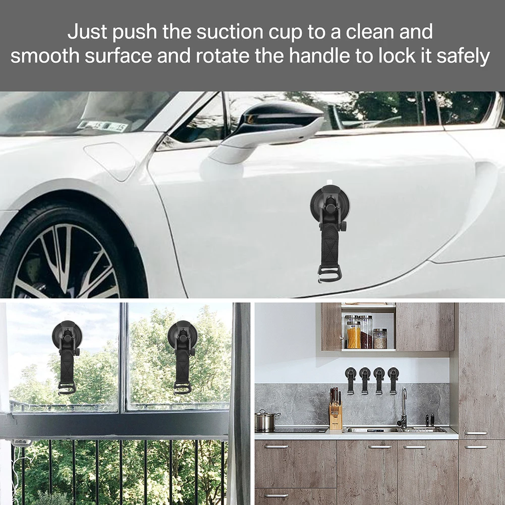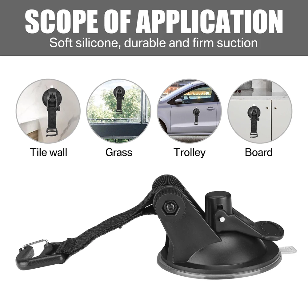 Ampliamente utilizado: las ventosas se pueden utilizar para áreas exteriores como toldos, tiendas de campaña y ventanas de techo y son ideales para cualquier amante del camping. Fácil de transportar cuando viaja. También se puede utilizar en interiores, baños, cocinas, oficinas, garajes, etc. como ganchos.