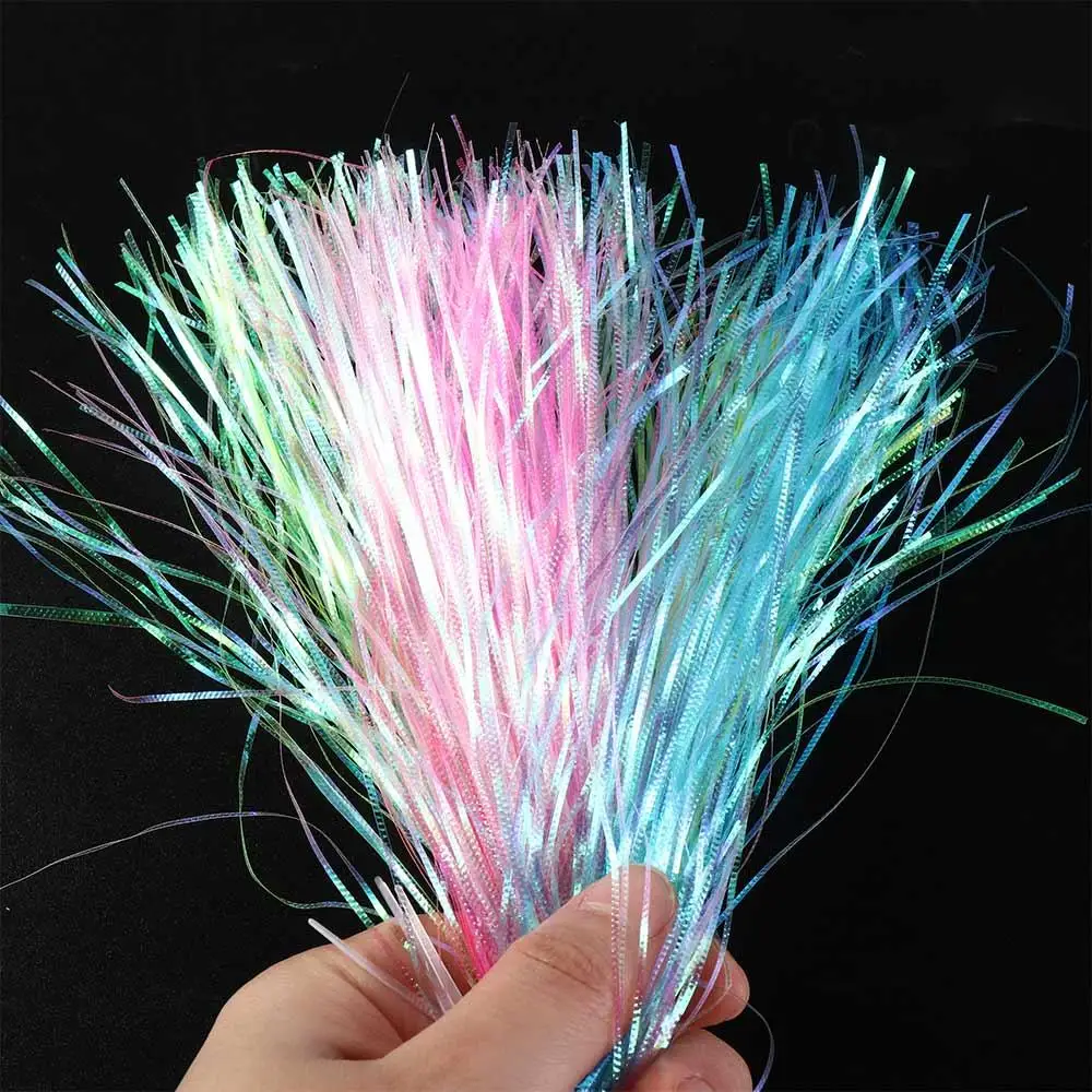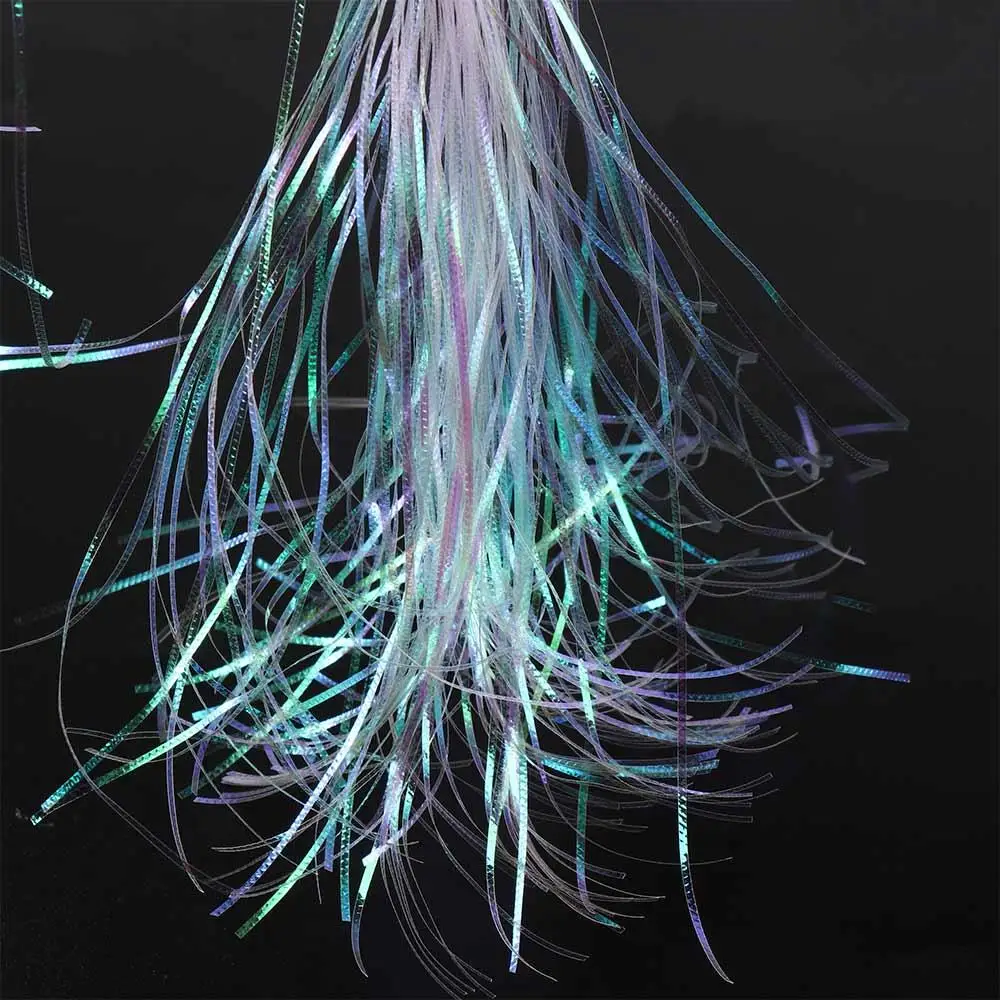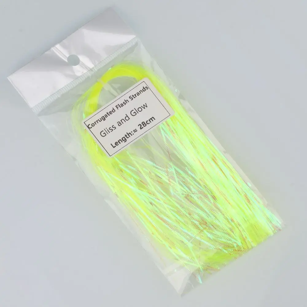 Longitud: aproximadamente 28cm/11,02 PULGADAS Ancho: aproximadamente 1mm Color: como muestra la imagen Cantidad: ≈ 125 hebras/paquete El paquete incluye: 1 bolsa de hebras de Flash corrugadas/hebras de Gliss características: los filamentos de nailon envuelven firmemente Cada hebra de Flashabou, las hebras están corrugadas para que cuando refleje la luz, simula las escamas de un pez. Excelente para alas, colas, acanalado y material de Envoltura Corporal.