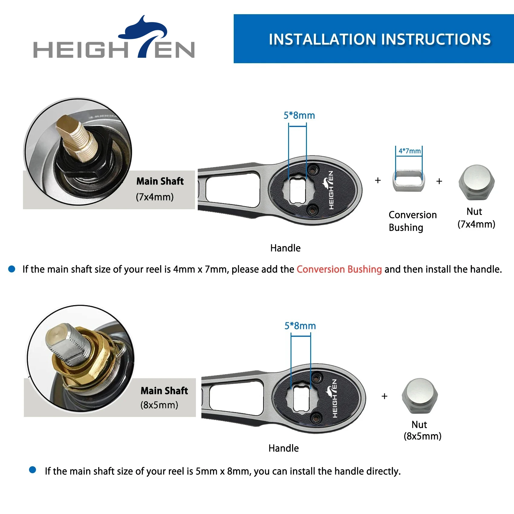 HEIGHTEN Baitcaster, mango único, longitud del eje ajustable de 80mm a 90mm con perilla degradada de 45mm, accesorios de modificación de pesca con señuelo