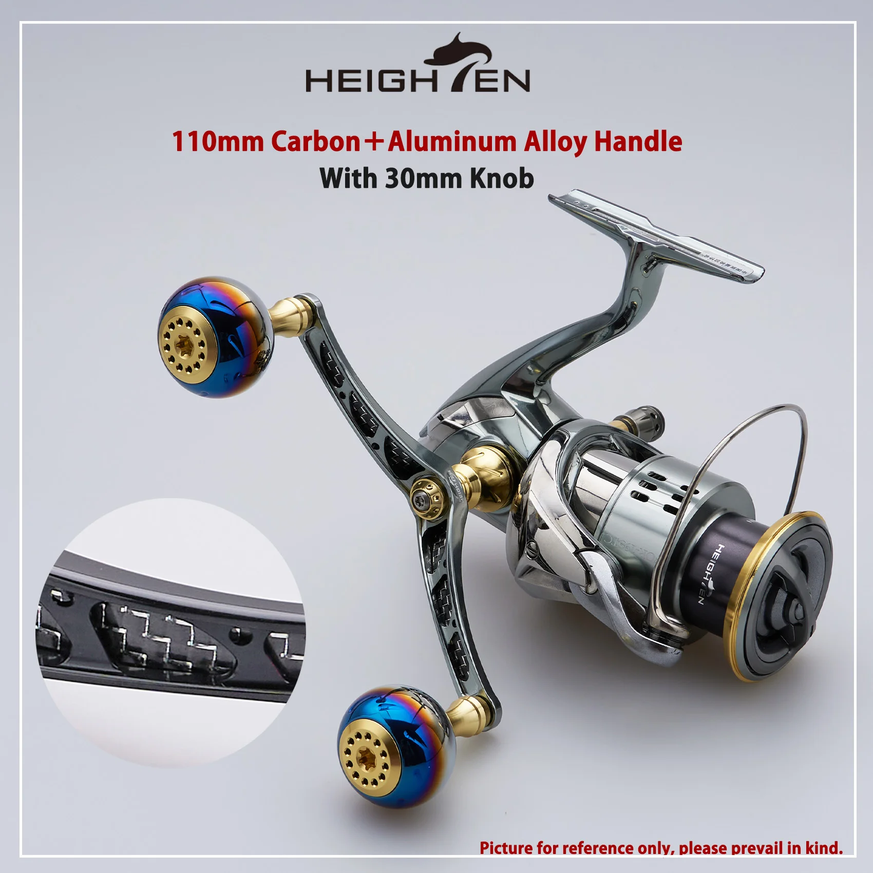 HEIGHTEN Mango de carrete giratorio de 56mm con perilla de 30mm para Daiwa Luvias Shimano Vanford Twin Power