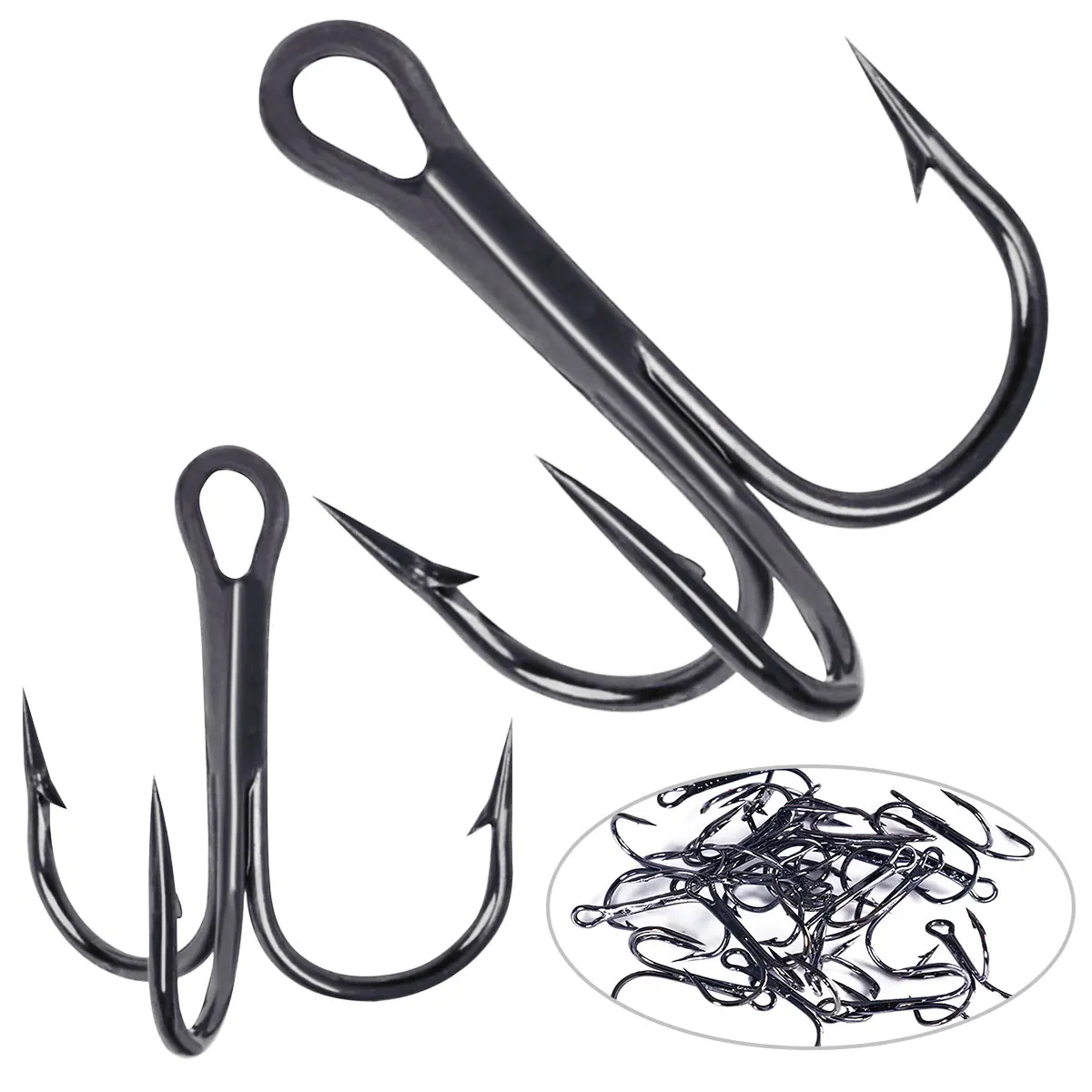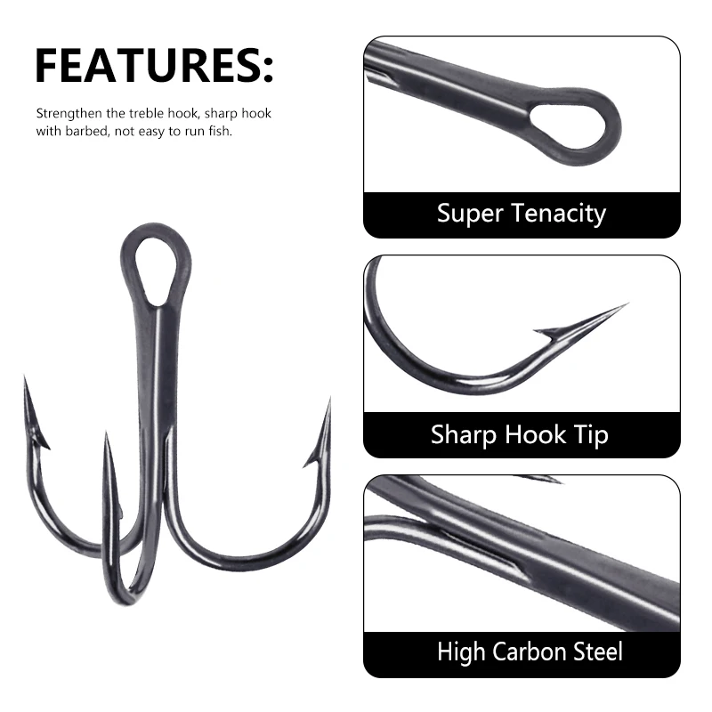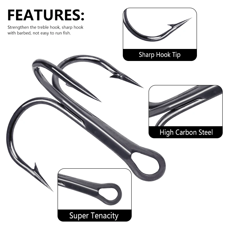 Hengjia 20 anzuelos de pesca triples de acero rico en carbono 2 # 4 # 6 # 8 # 10 # 12 # 14 # Juego de anzuelos triples doblados, anzuelos de anclaje para pesca en el mar