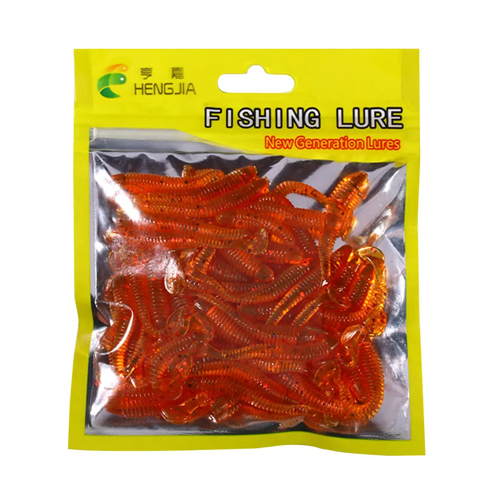 HENGJIA 50 unids/bolsa 5cm cola en T cebo suave de silicona pesca gusanos artificiales señuelos blandos carpa lubina accesorios de pesca de mar