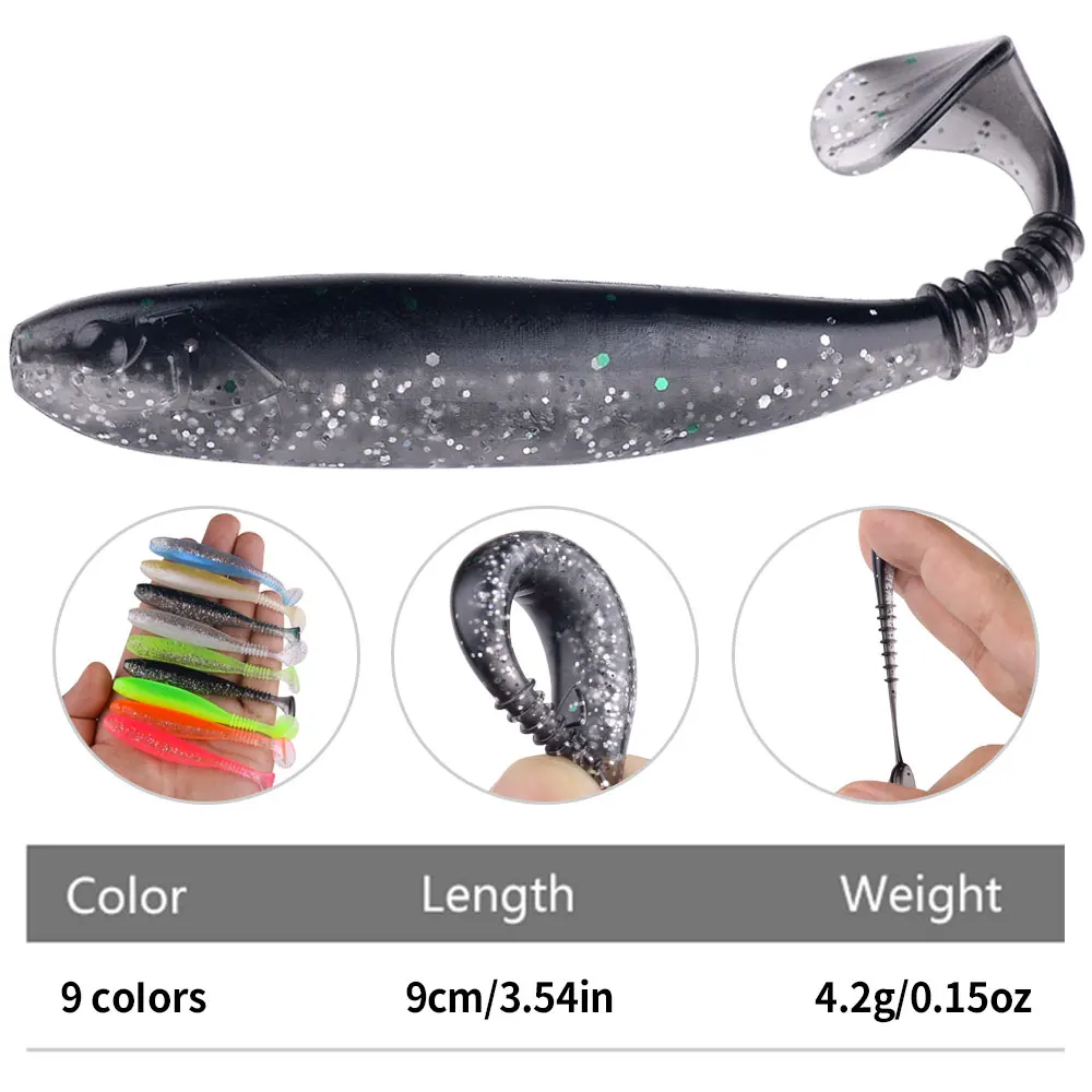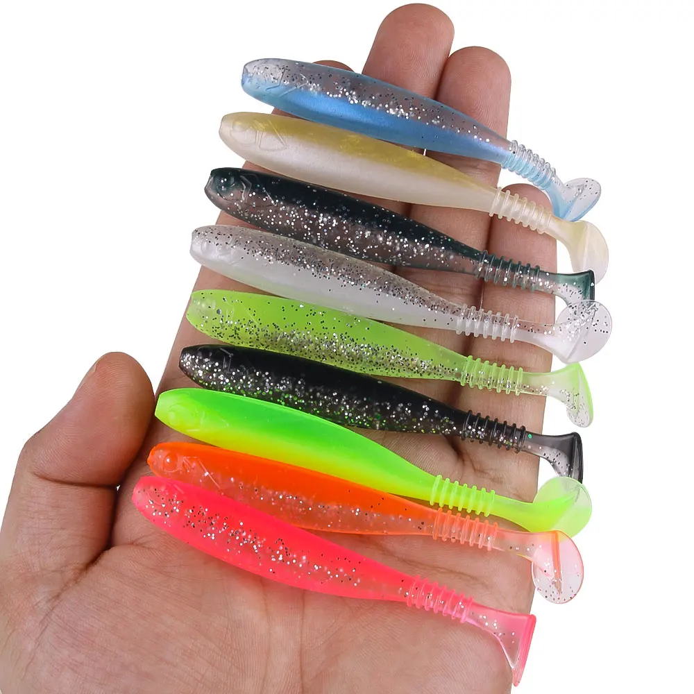 Hengjia 50 unids/lote 4,5 CM pequeño gusano suave Swimbait cola en T cebo de silicona Wobbler aparejos de pesca para carpa lubina Pike