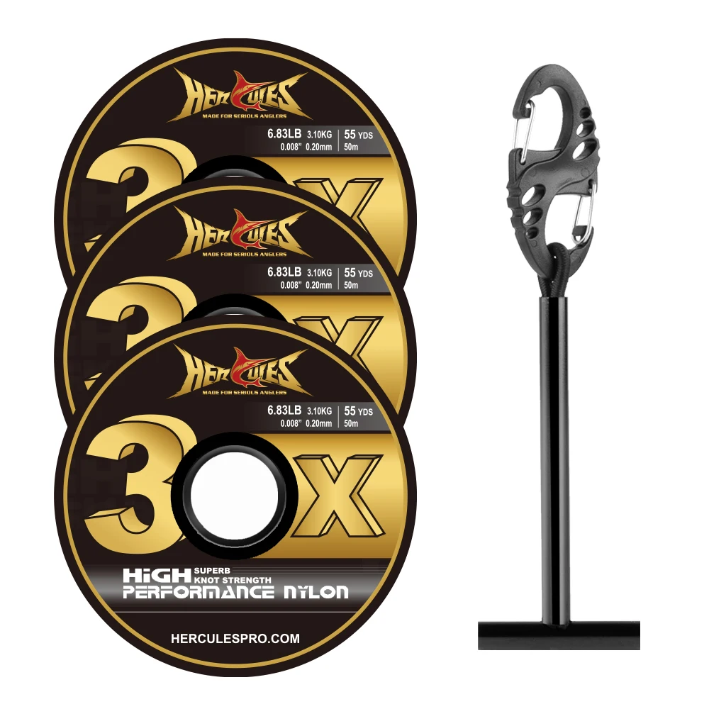 HERCULES Fly Fishing Tippet Paquete de 3 con soporte Fly Tippet 1X -7X 2.53LB 12.78LB