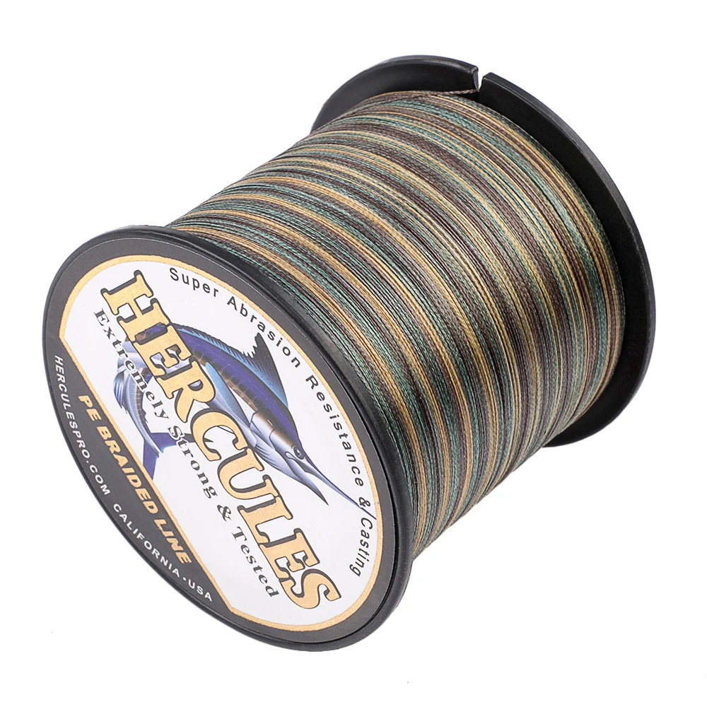 Línea de Pesca de carpa Hercules, 4 hebras, línea de Pesca trenzada de camuflaje, 100M, 300M, 500M, 1000M, 1500M, 2000M, PE, Pesca, cordón de tejido de agua salada