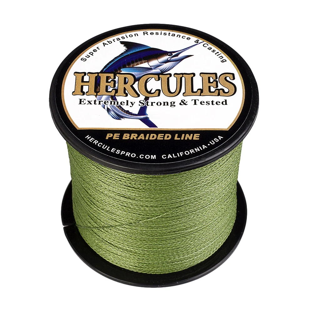 Línea de pesca Hercules verde militar PE 100M 300M 500M 1000M 1500M 2000M 4 hebras trenzada línea de pesca de carpa súper fuerte agua salada