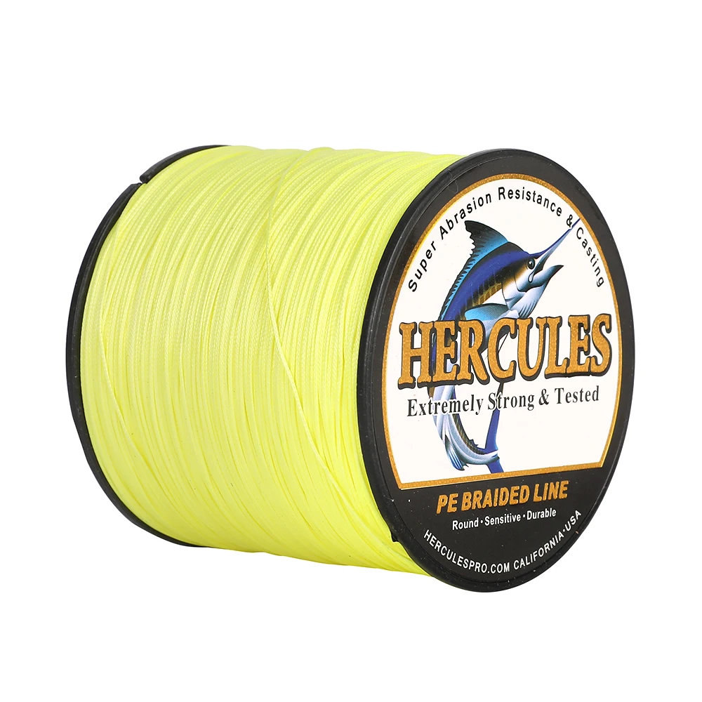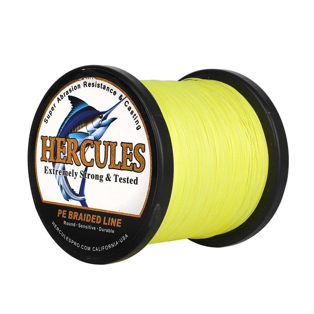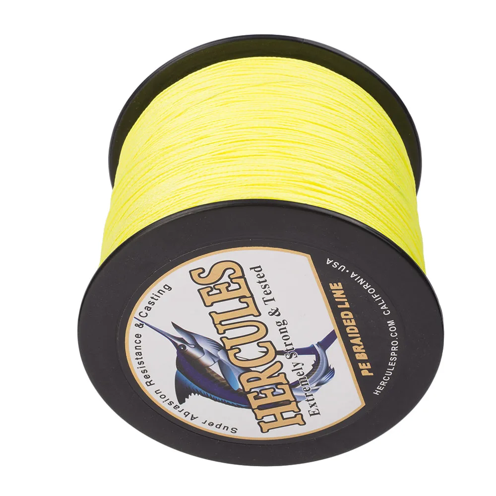 Hercules 4 hebras 100M 300M 500M 1000M 1500M 2000M PE fluorescente amarillo trenzado línea de pesca mar carpa extrema línea de pesca