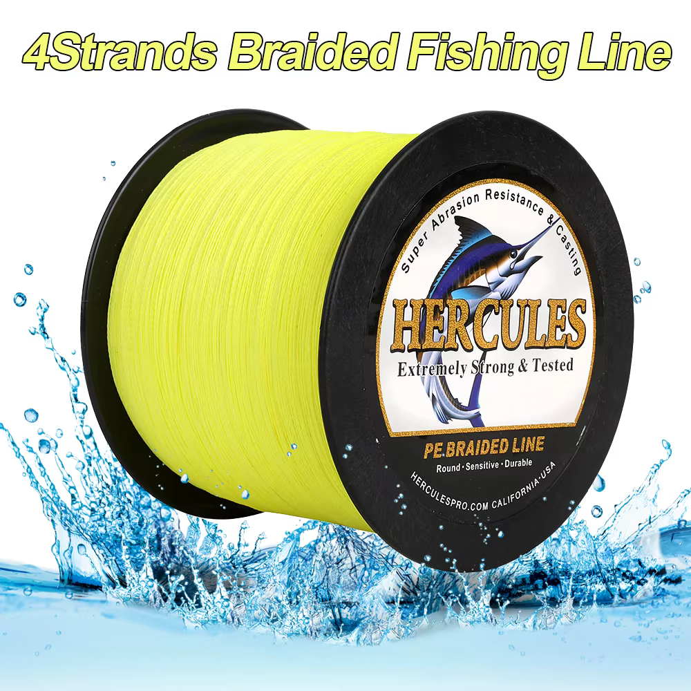 Hercules 4 hebras 100M 300M 500M 1000M 1500M 2000M PE fluorescente amarillo trenzado línea de pesca mar carpa extrema línea de pesca