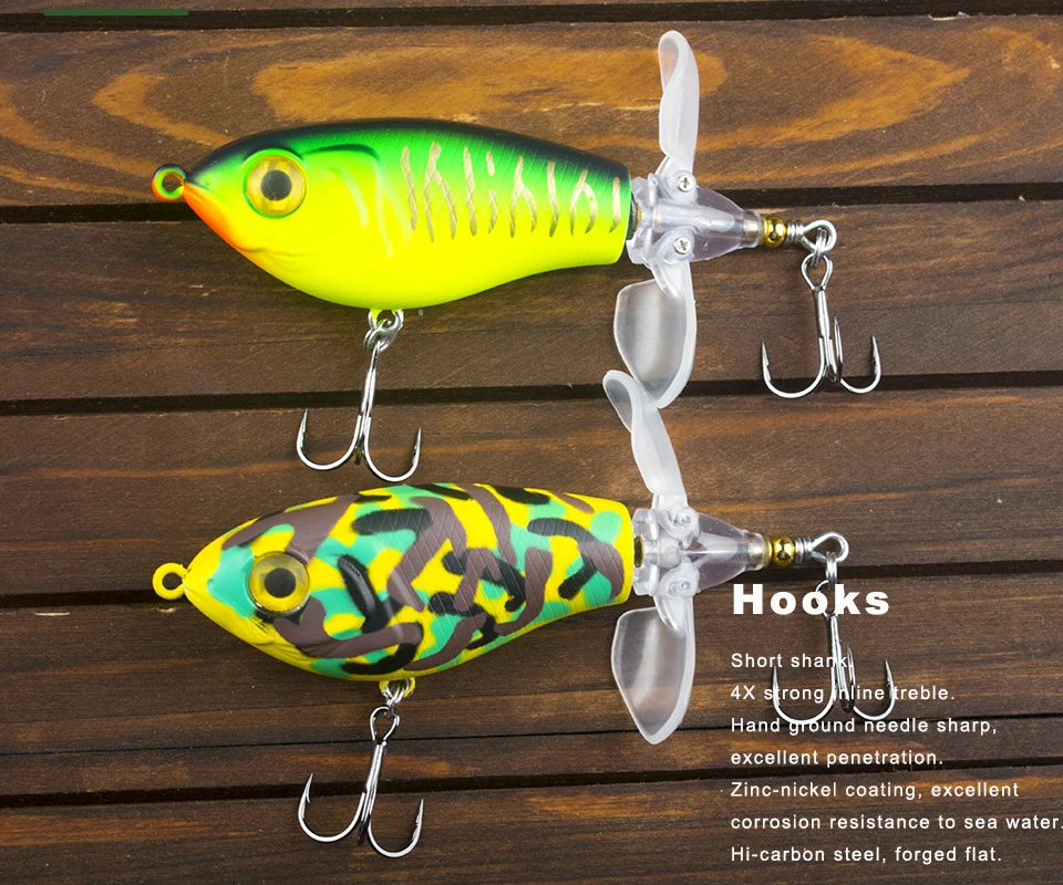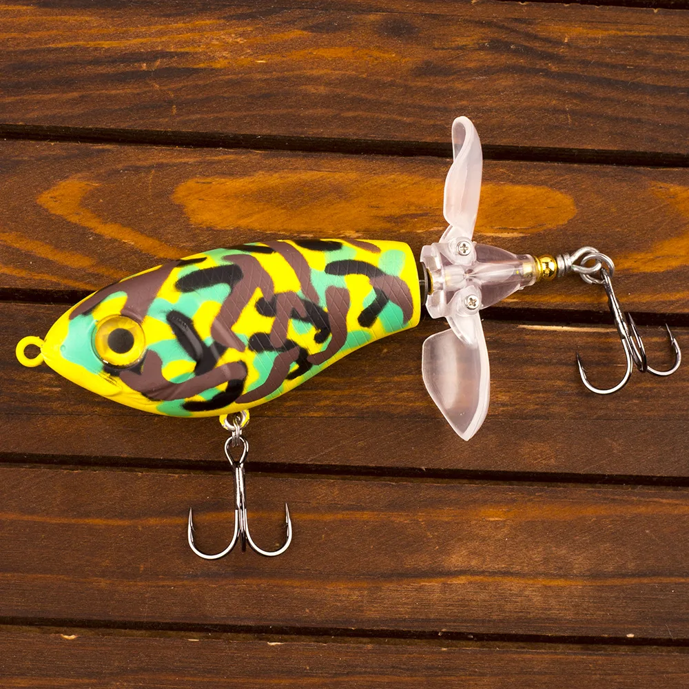 Con un diseño de cola de doble hélice, emite una fuerte salpicadura a medida que se mueve por el agua, creando ruido y emoción que los peces no pueden ignorar.