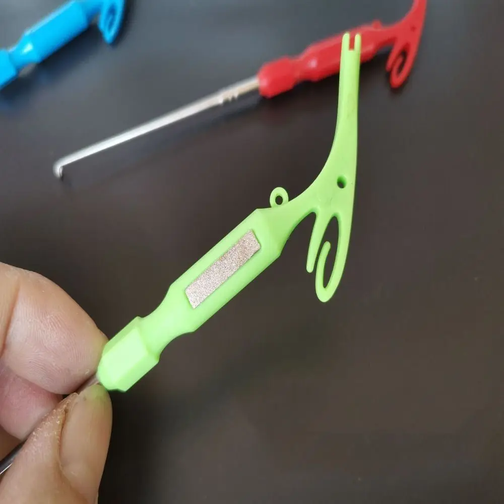 Material: plástico + Acero inoxidable Color: color aleatorio Peso del paquete: aprox. 15g Tamaño: aprox. 16x5x4,3 cm Función: Gancho, hilo de atar, nudo El paquete incluye: 1 removedor de gancho de PC Aviso: debido al lote, el color del mango de goma puede ser diferente al del dibujo, pero no afecta el uso. 100% características nuevas y de alta calidad: 1. Perfecto para quitar anzuelos de peces con dientes o peces profundamente enganchados. 2. Ligero y práctico, cómodo de llevar y fácil de usar con mango de plástico. 3. Con un pequeño agujero en el mango, puede cogerlo con una línea. 4. Hecho de material metálico, fuerte y duradero.