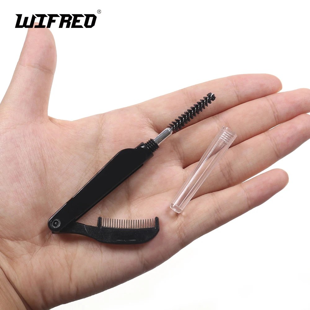 Herramienta para atar moscas 2 en 1, peine de dientes plegable de acero inoxidable y cepillo de nailon para doblar, fibra de plumas, piernas dobladas, cuerpos de alas