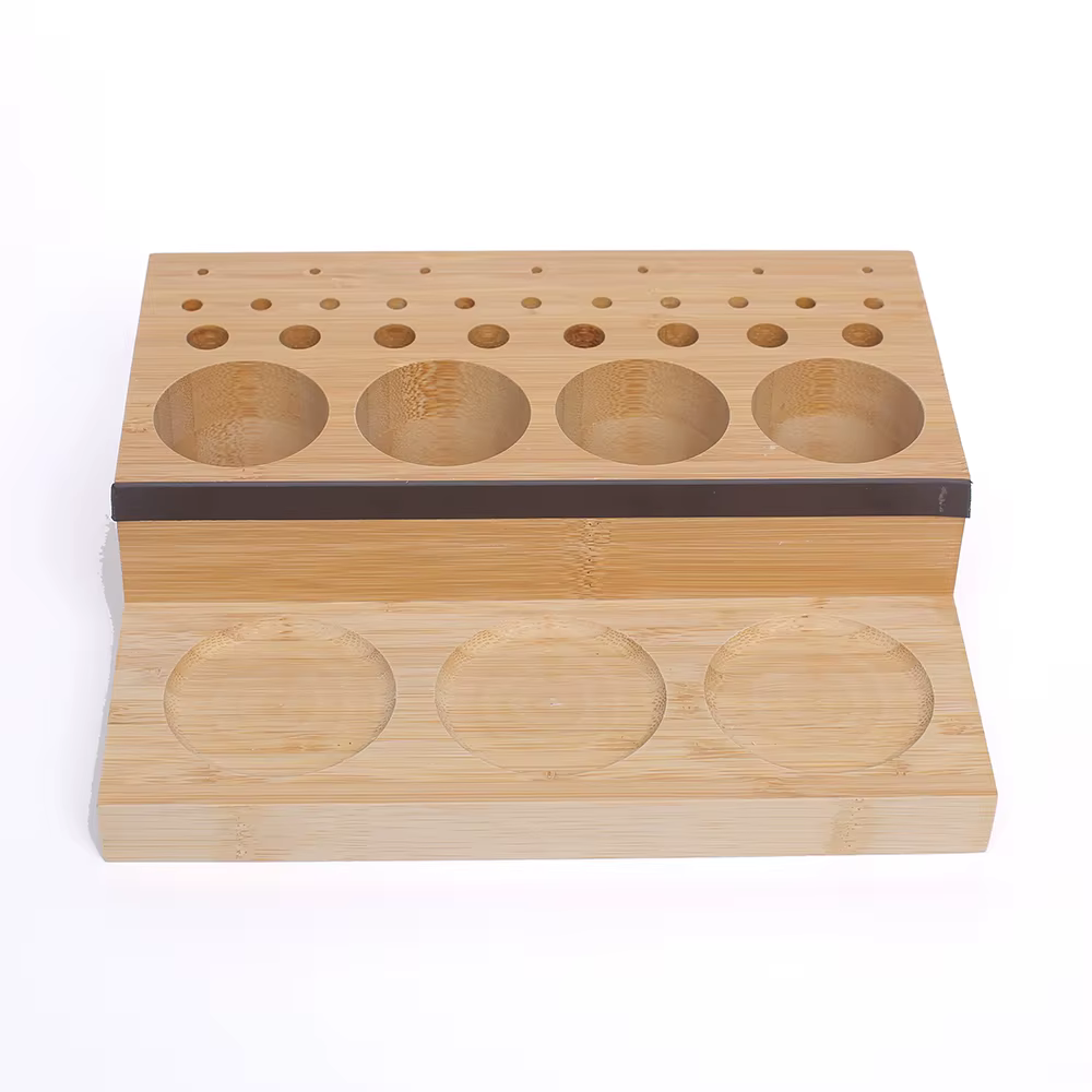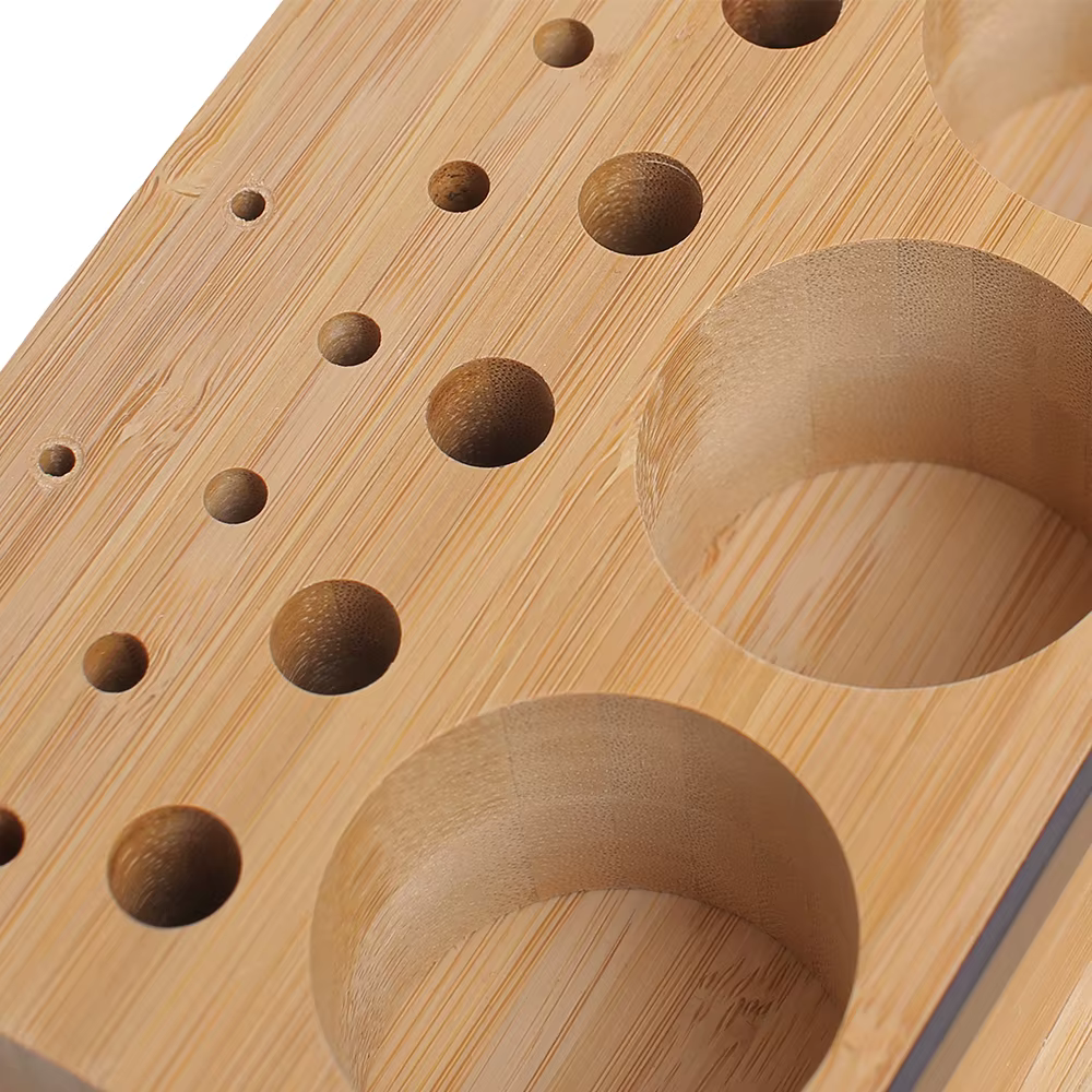 CALIDAD PREMIUM: Nuestra duradera Estación de atado de moscas de madera de bambú rinde año tras año de uso, comodidad y disfrute. Guarde sus suministros de pesca con mosca fácilmente con nuestro práctico organizador de herramientas de pesca.