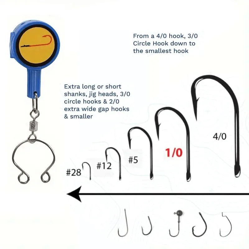 1. a muchos Aplicar aparejos: Este producto es una herramienta de atado de pesca versátil. No solo se puede usar para ganchos del tamaño #28 AL 4/0, sino que también se puede usar para atar nudos en otros aparejos, como eslabones giratorios, cabezales de plantilla y clips de velocidad.
