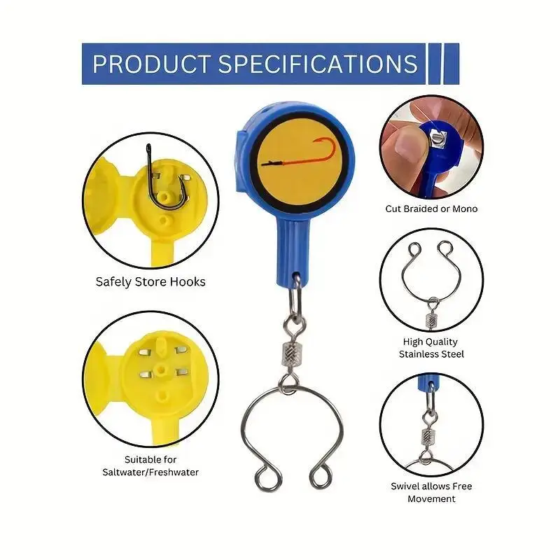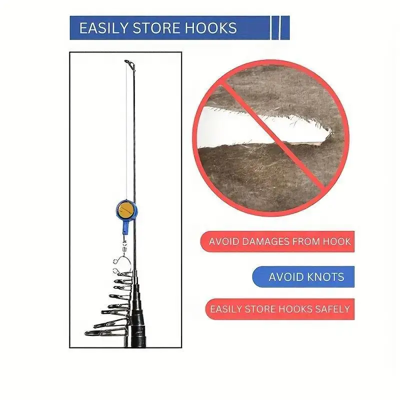 4. Fácil y cómodo de usar: es compacto y portátil, e incluso se puede poner en la caja de aparejos. Puede atar un nudo con la cubierta del gancho en cualquier lugar, como en casa, en el barco/kayak o en la orilla.
