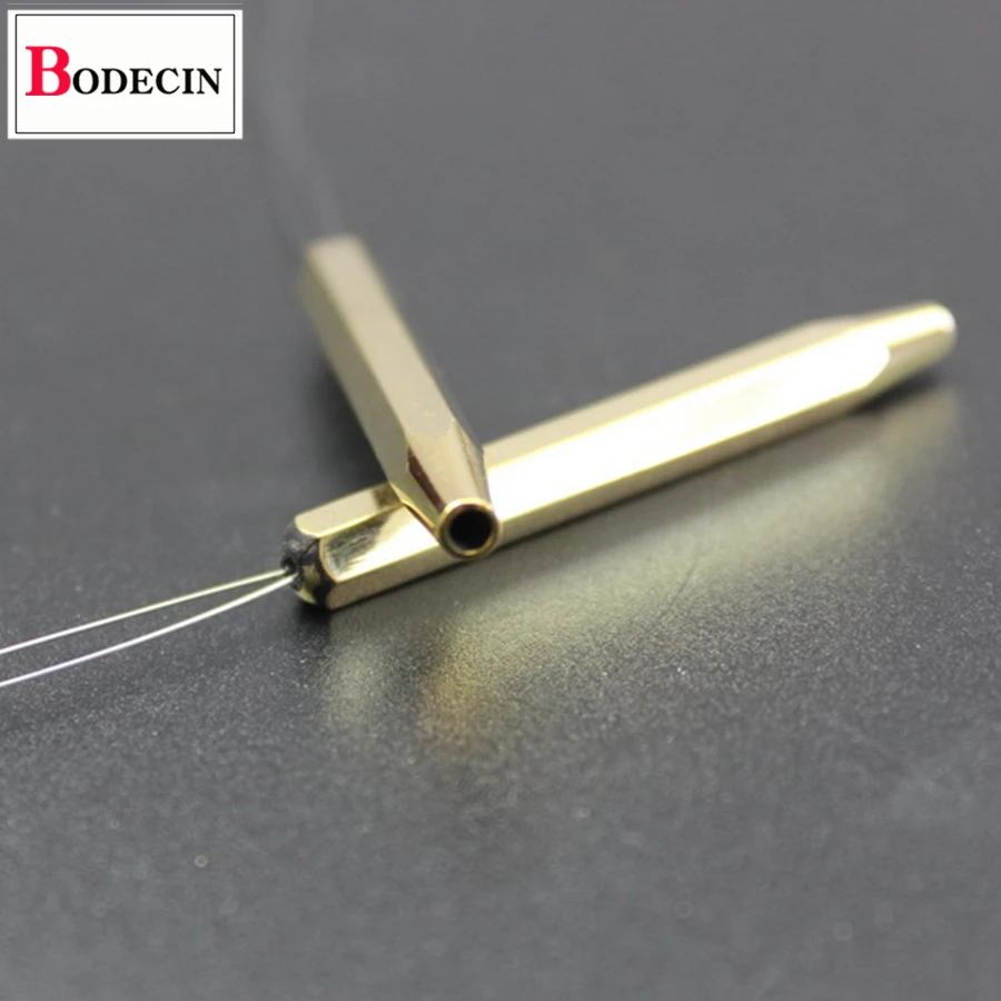 1 ud. Herramienta de atado de pesca con mosca, enhebrador de medio enganche, mango de encuadernación, enhebrador de bobina de latón Extra largo