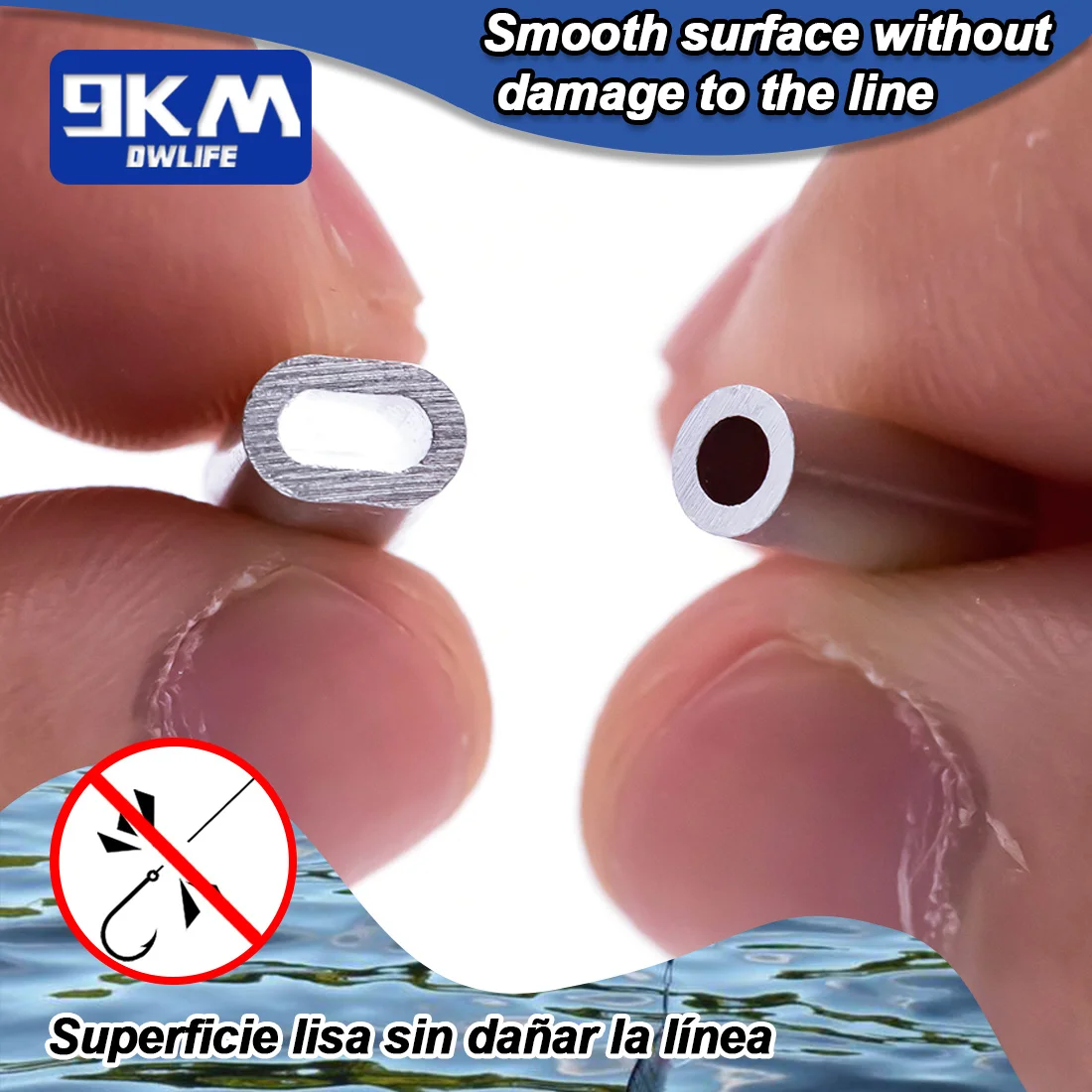[MATERIAL PREMIUM]: Nuestras fundas de un solo engarce para alambre de pesca están hechas de aluminio de calidad.Loja ligera, pequeña y linda para conectar mono y cable líder u otros materiales líderes.Una vez conectado a la línea o al cable, garantiza una sujeción firme.