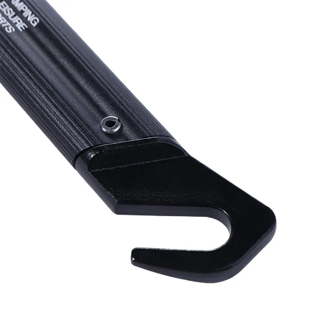 2. Multifunctional: Designed with small hoe for digging, V groove and hook tail that you can use to remove pegs, and rope hanging hole for easy storage.