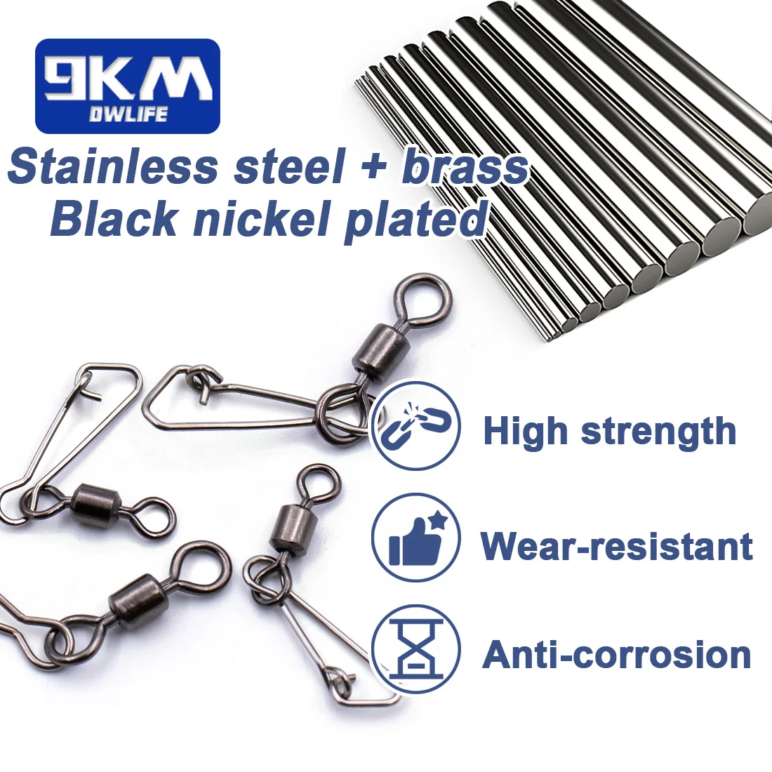 Material: Swivel material is copper; snap material is stainless steel, high quality metal with plating treatment, not easy to resistance and not rusty.fishing swivel snap connectors are strong pull, very light, be sensitive to the information during fishing.