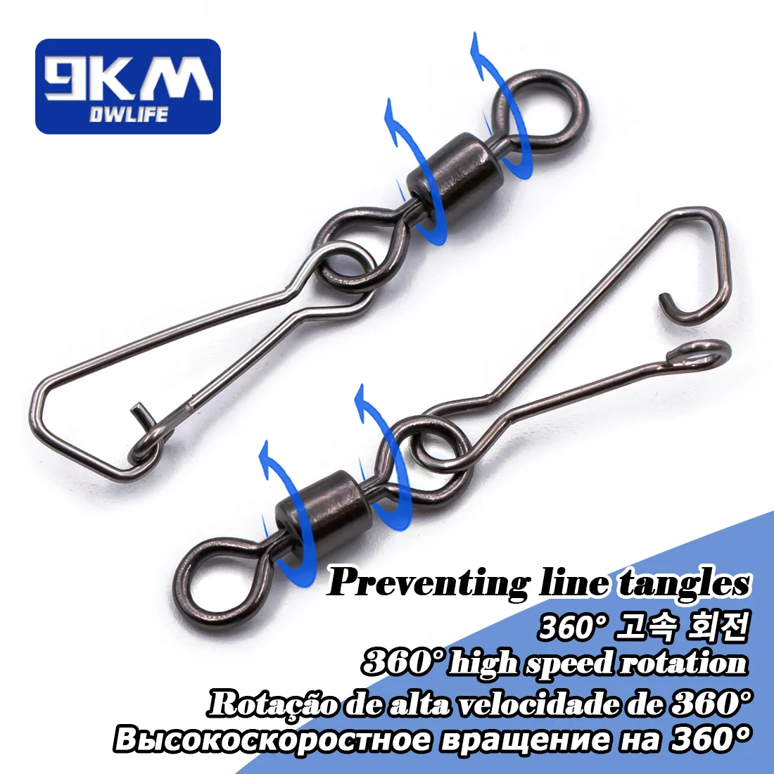 Rotación flexible: Girar en caso de fuerza también puede ser una rotación flexible y permitir un cambio rápido de aparejos.Los broches giran suavemente y evitan que la línea se enrolle.Reduce tu trabajo de pesca.