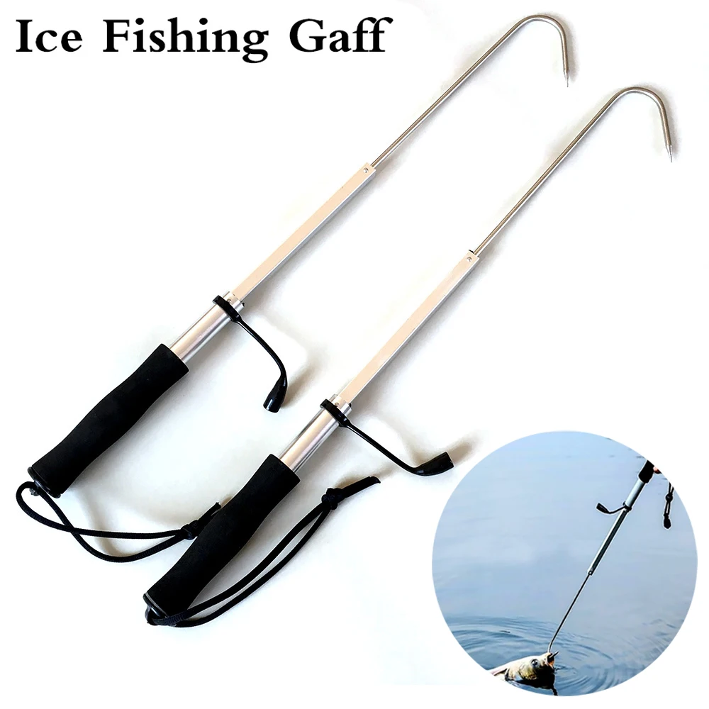 Herramienta de pesca de acero inoxidable, aparejo de anzuelo de lanza de pesca en hielo, telescópico abierto de 64cm-116cm para peces de peso ligero y pesado activo