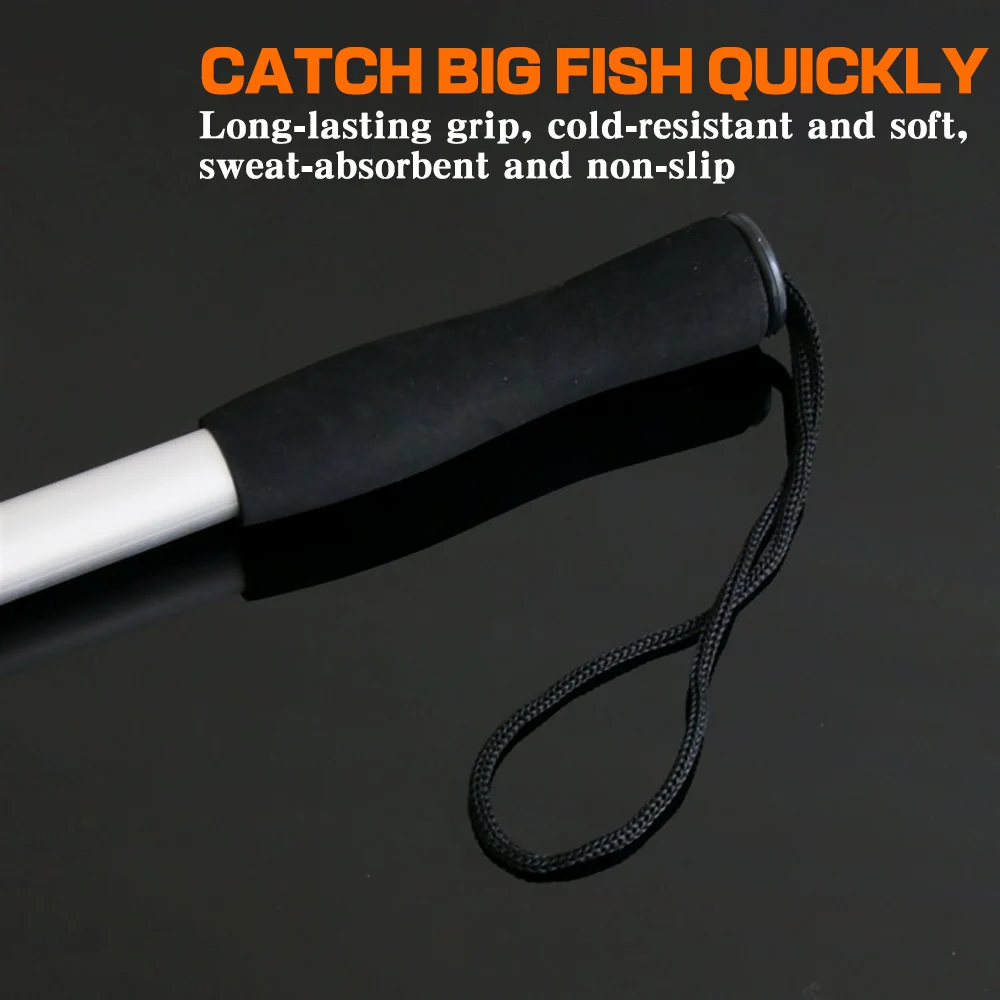 Características 1. La cabeza del gancho está hecha de acero inoxidable, con una tapa protectora, que es segura. 2. Una herramienta esencial para atrapar peces grandes y peces afilados. 3. El eje está hecho de aleación de aluminio, que es ligero en peso pero lo suficientemente fuerte como para manejar peces grandes. 4. Mango de EVA, cómodo de sostener.