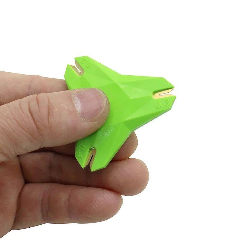 Tres diámetros de pelacables de 0,2, 0,3 y 0,4 mm se adaptan a todas las cepas de rotura de eslabones de gancho trenzados recubiertos.