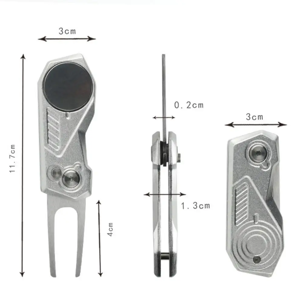 Tipo de artículo: Herramienta de reparación Divot Golf Uso: materiales de entrenamiento de Golf: aleación de aluminio Tamaño: 11,7*3*1,3 cm (4,61*1,18*0.51in) Paquete incluido: debido a la diferencia de configuración de la luz y la pantalla, el color del artículo puede ser ligeramente diferente al de las imágenes. Permita una ligera diferencia en las dimensiones debido a las diferentes mediciones manuales.