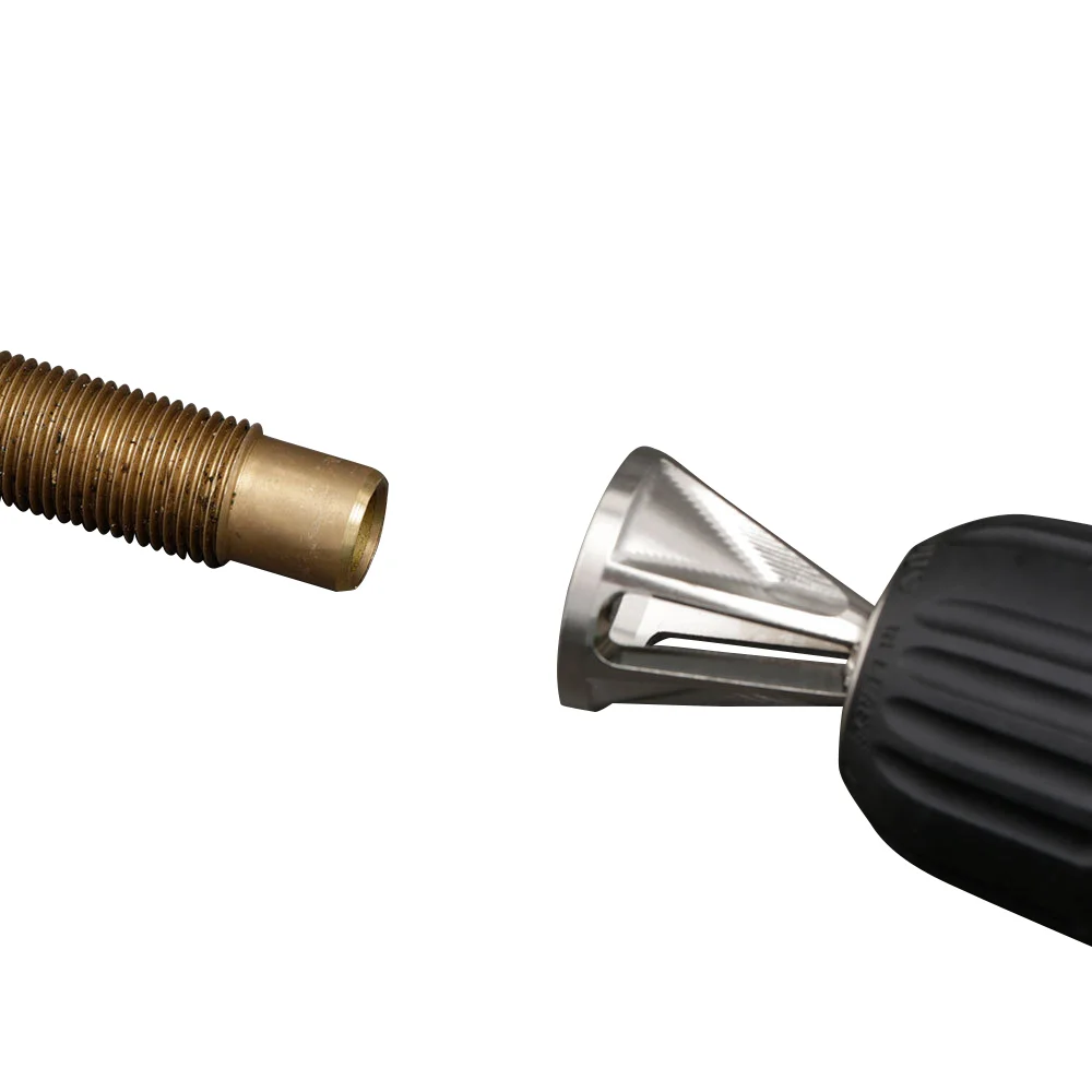Esta herramienta de chaflán externo desbarbado repara rápidamente los pernos dañados y aprieta las tuercas en su lugar, ahorrándole tiempo y dinero. La herramienta simplifica el proceso de reparación, puede reducir el tiempo de reparación y elimina la necesidad de reemplazar el hardware costoso o difícil de encontrar, al tiempo que mantiene la seguridad en niveles previamente inalcanzables.