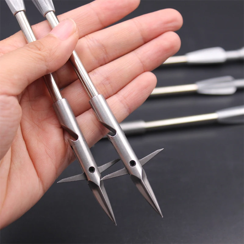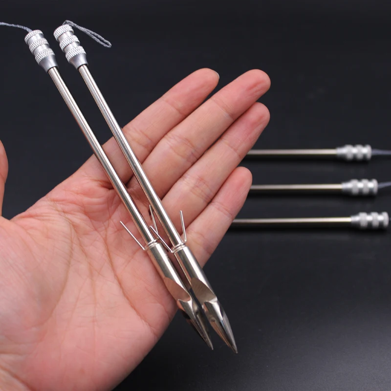 √ Aspecto: Eje de dardo 1144, cabeza de dardo 440c, todo el cuerpo del dardo de tiro de pez es plateado, como si las olas brillantes fueran un pequeño río, Y es como la encarnación del mar cuando viaja en el agua, al igual que ser invisible en el agua. El uso de materiales de alta calidad es muy pesado en la mano, lo que es muy adecuado para la pesca al aire libre. La cabeza triangular del dardo se ve muy afilada en apariencia, y no hay nada que decir en el combate real.