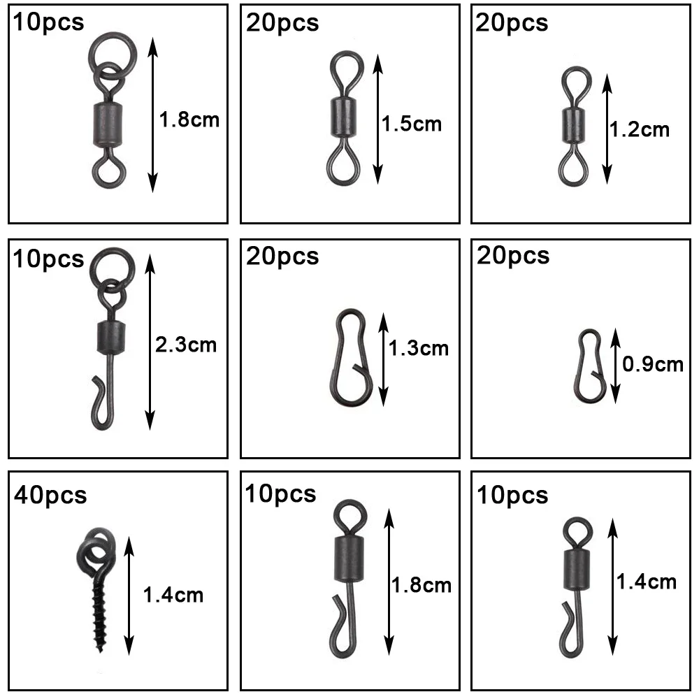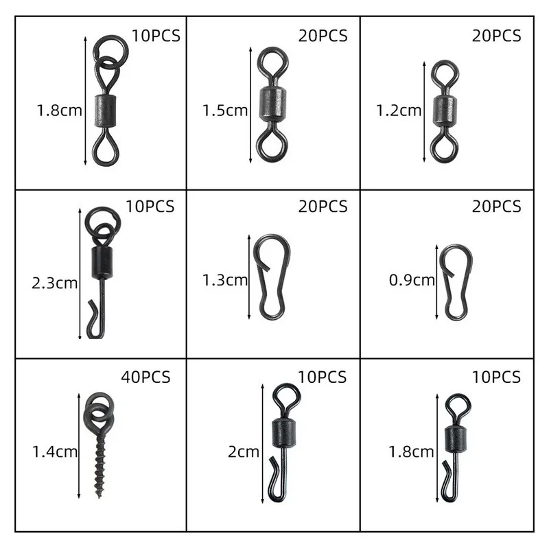 【PORTÁTIL 】El Kit de aparejos de pesca con una caja pequeña, portátil y cabe fácilmente en su caja de asiento de pesca, mochila de pesca y bolsillo del chaleco de pesca. Todos los accesorios de pesca se colocan en diferentes rejillas pequeñas, fáciles de usar. Tamaño de la Caja: 4,72x3,54x1,38 (in)