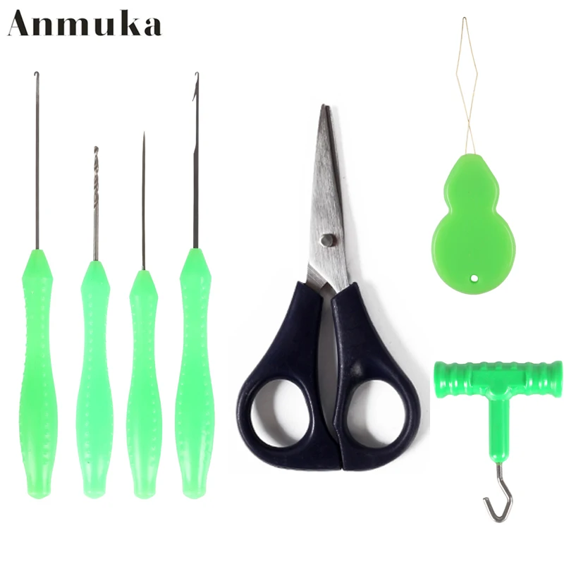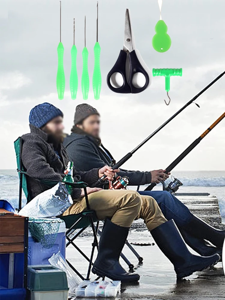 Herramientas de pesca europeas de 7 piezas, Kit de roscado de cebo, taladro de perforación, aguja de anudado, tijeras extractoras de línea, juego de ampollas de pesca