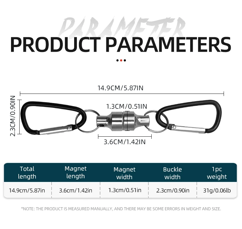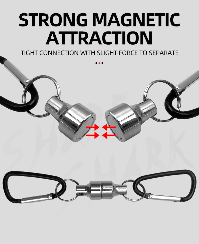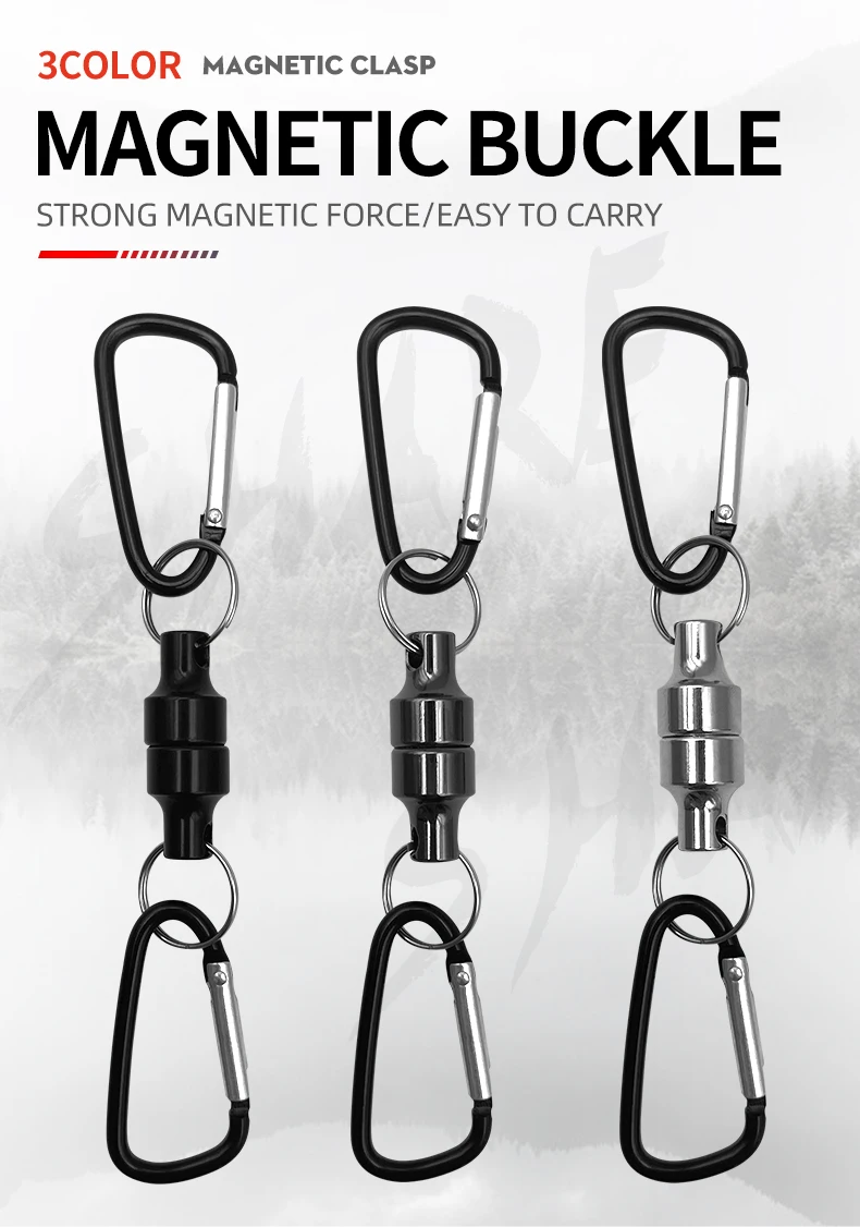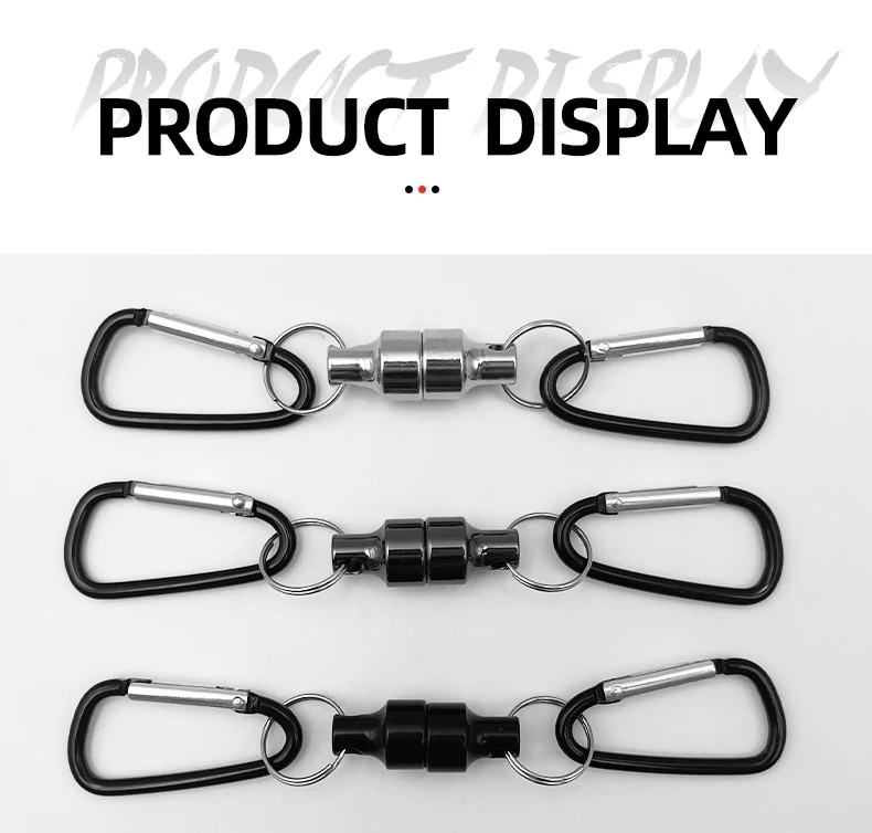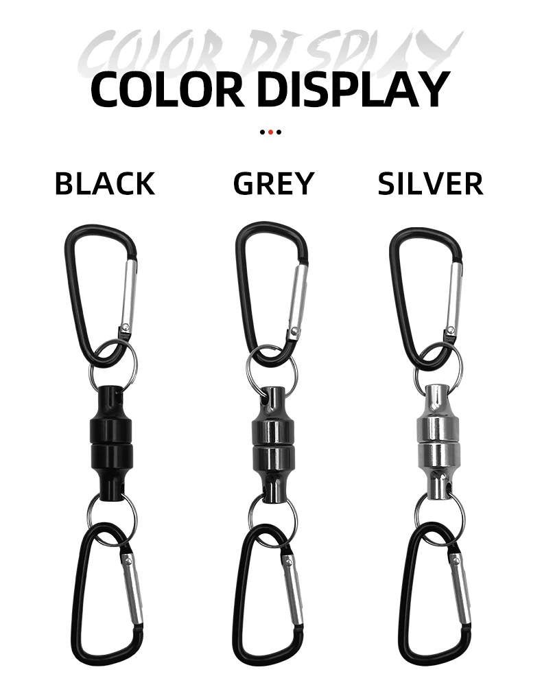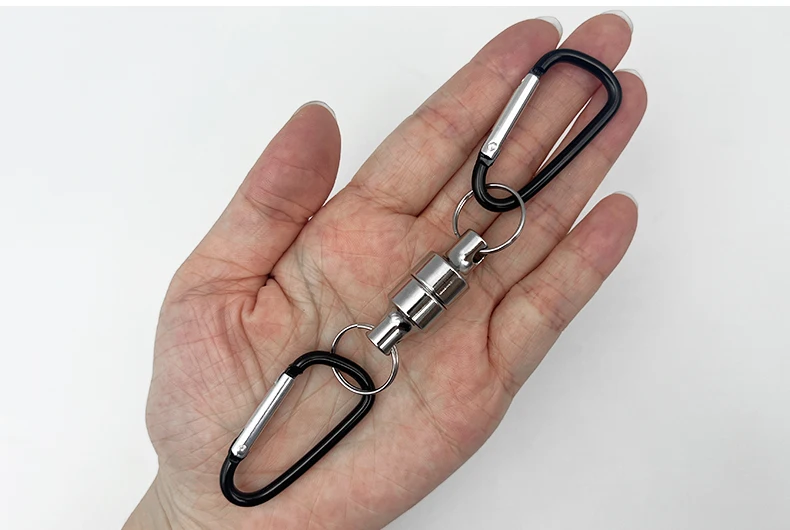 【Material】: Clip de liberación magnética: aluminio.Ganchos mosquetones: Alambre de acero.