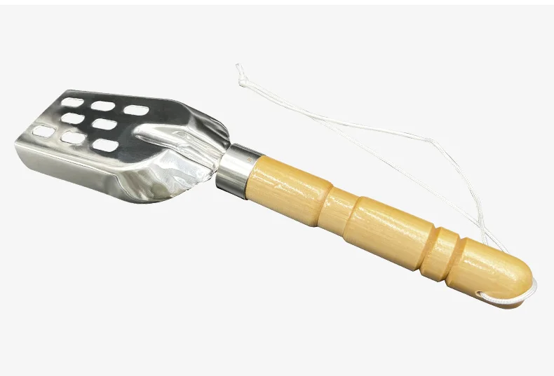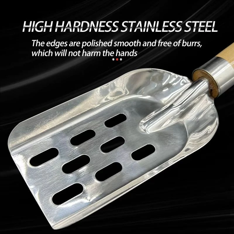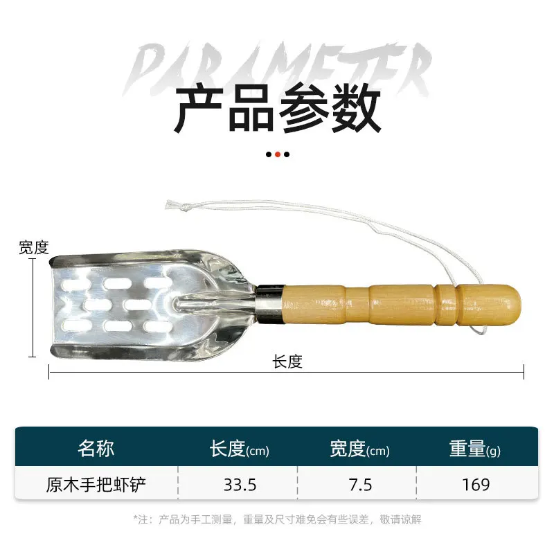 Herramientas de pesca, pala de cebo para camarones de acero inoxidable, mango de madera integrado antideslizante, espátula para camarones, pala para cebo de pesca