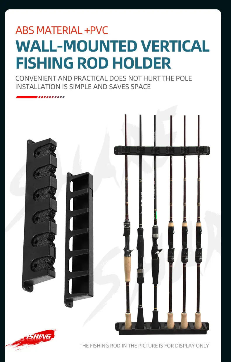 Soportes para cañas de pescar, estante para cañas de pescar montado en la pared, almacenamiento combinado de 6 cañas, soportes para cañas de pescar Vertical Horizontal
