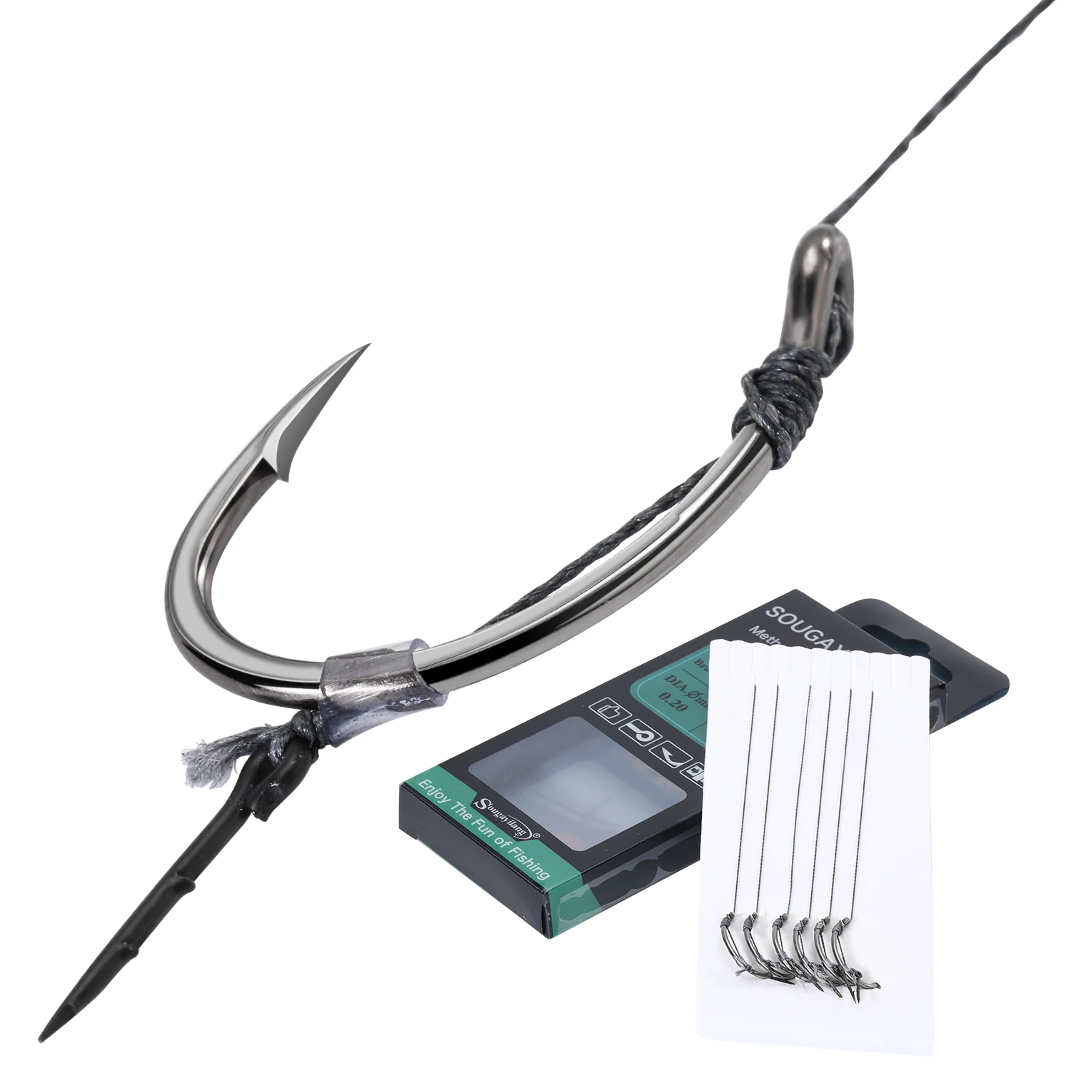 Estos anzuelos vienen preatados, lo que reduce el tiempo y el esfuerzo necesarios para preparar su equipo de pesca.