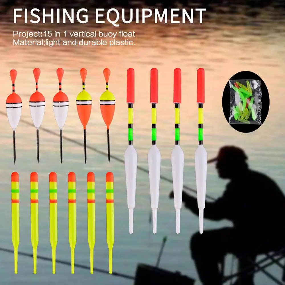 Item: 15pcs in 1 vertical buoy fishing floats fishing buoy floating bobber tube set