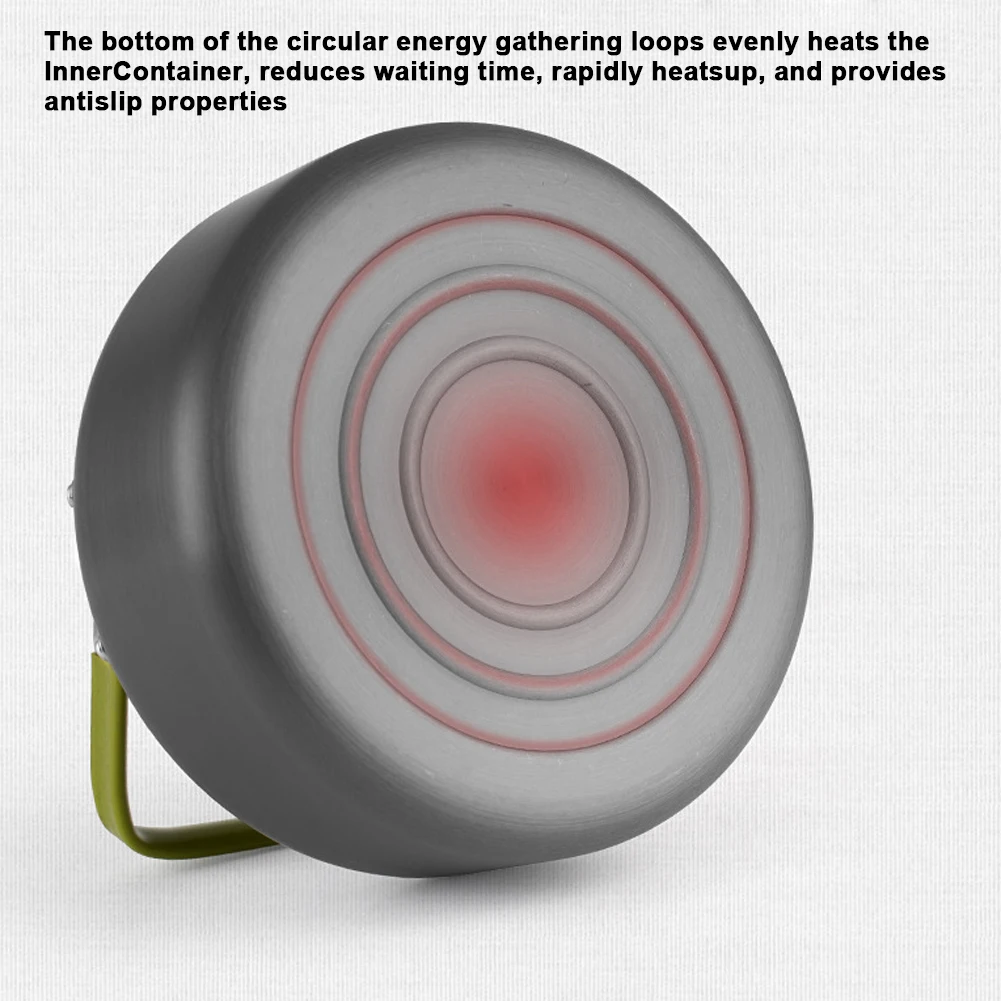La parte inferior de los bucles circulares de recolección de energía calienta uniformemente el recipiente interior, reduce el tiempo de espera, se calienta rápidamente y proporciona propiedades antideslizantes.