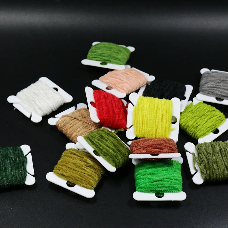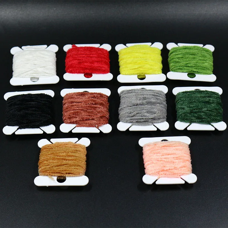 10 tarjetas/lote 10 colores surtidos hilo de chenilla de rayón/hilo de chenilla lne de oropel de 2mm para streamer/insectos ninfales