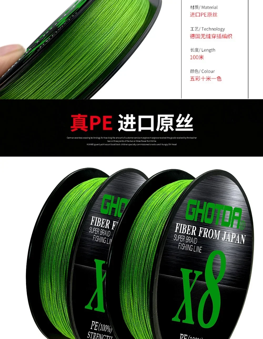 Colorfast 8 hebras PE alambre trenzado multifilamento Japón importación tela línea carpa pesca 0,6-8,0 #100M línea de pesca Max Drag 78LB