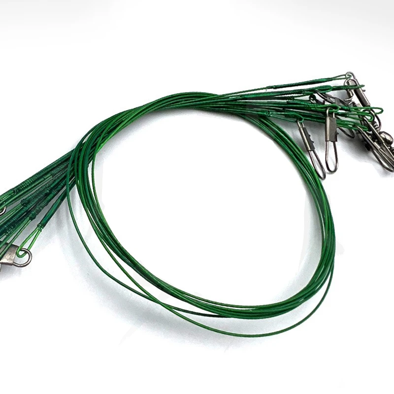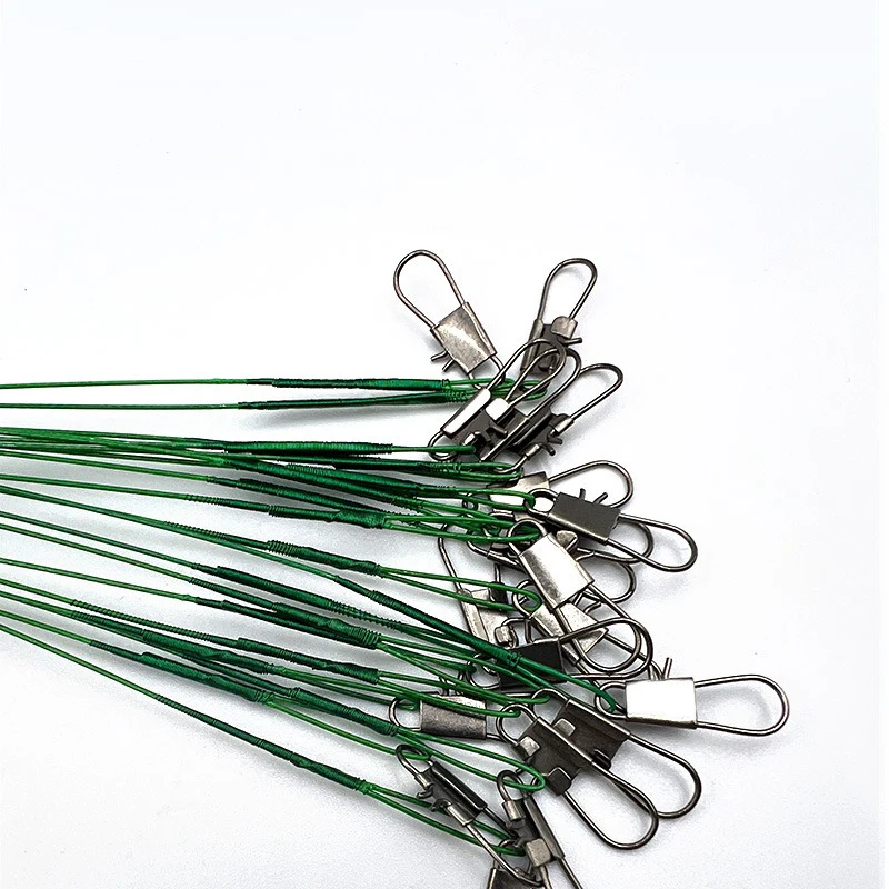 Hecho de acero inoxidable y nailon recubierto con eslabones giratorios y broches. Duradero y lo suficientemente resistente para peces con dientes afilados.