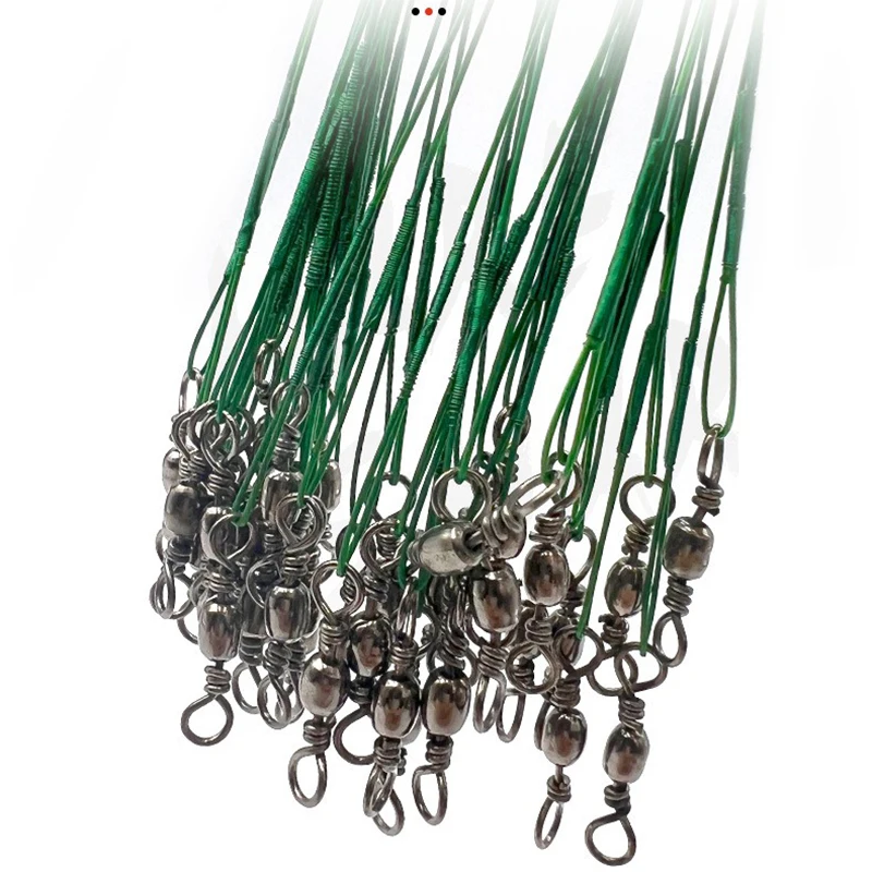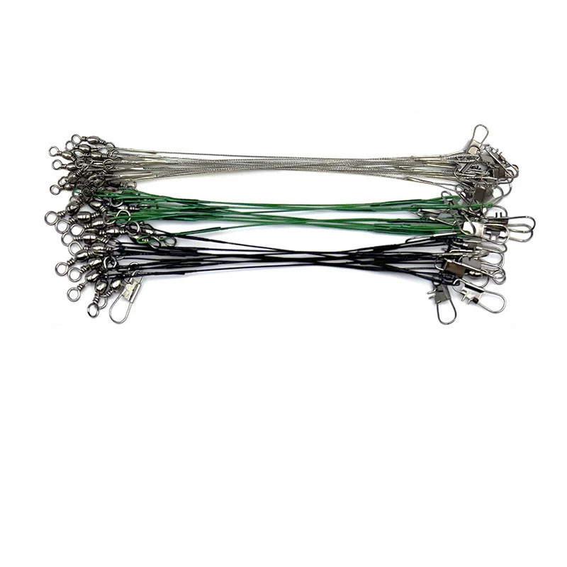Líder de línea de pesca de acero antimordedura de alambre de acero de 10-15cm-30cm con accesorio de pesca giratorio, correa de núcleo de plomo, alambre de pesca