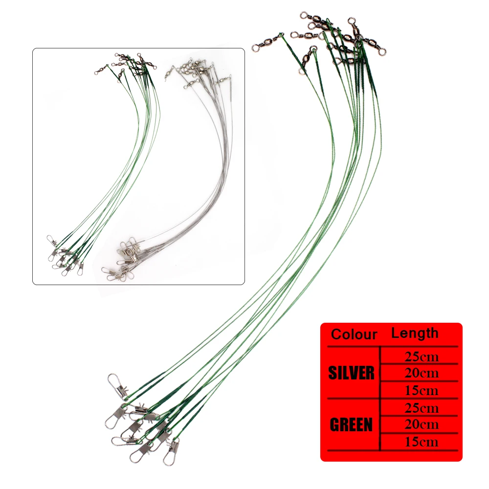 Hilo de pescar de acero para morder, correa de núcleo de plomo, líder de alambre de acero con accesorio giratorio Olta, 2 colores, 15cm/20cm/25cm, 10 unids/lote