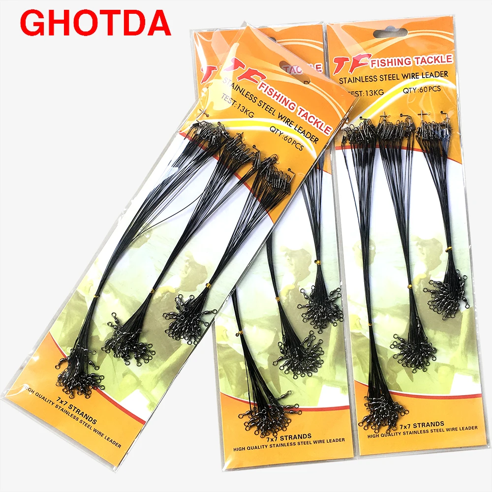 60 unids/lote cuerda de alambre línea de pesca con conector de correa de gancho línea antimordida accesorio de pesca Correa cable de guía de pesca