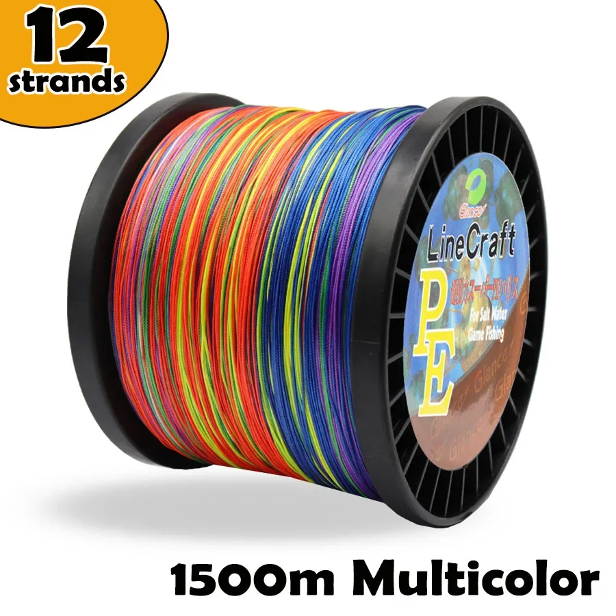 Línea de pesca trenzada de 12 hebras, 1500M, PE trenzado, multifilamento fuerte, alambre de pesca de agua salada de mar duradero