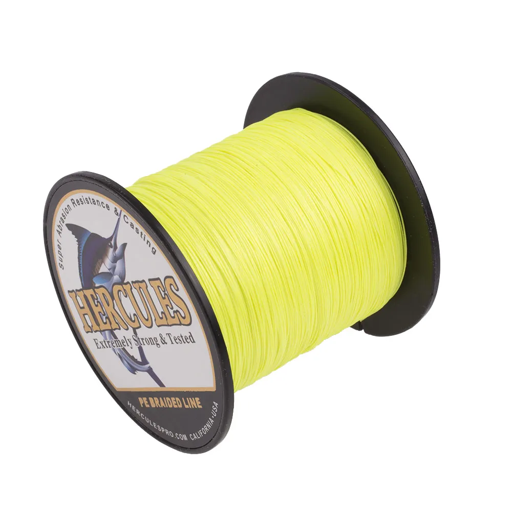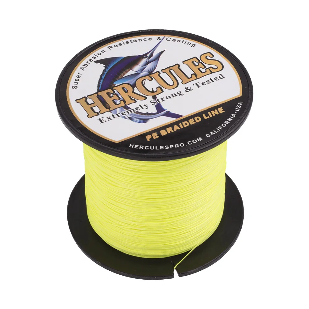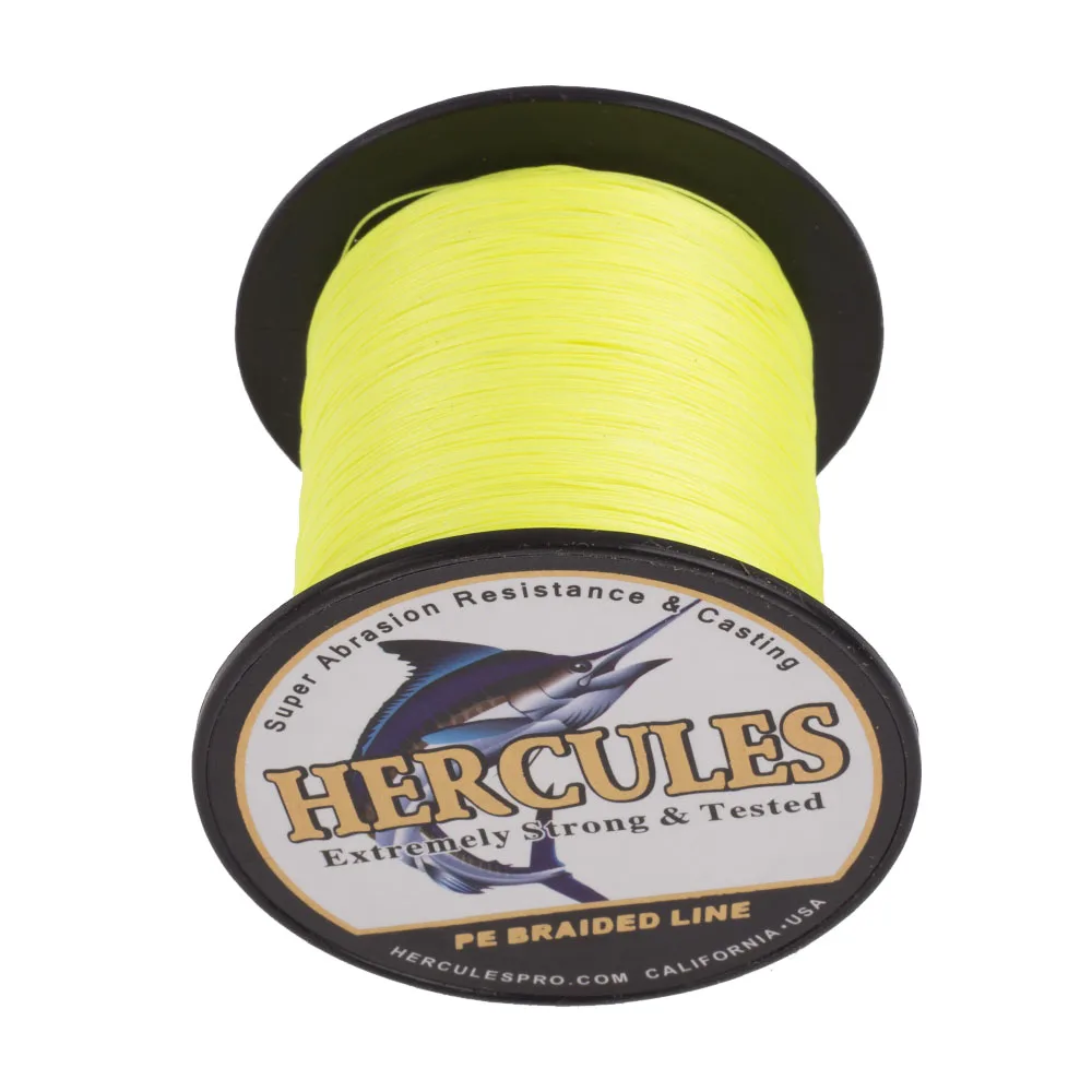 Hilo de pescar trenzado Hercules, 8 hebras, amarillo fluorescente, 100M, 300M, 500M, 1000M, 1500M, 2000M, cable Linha multifilamento para pesca