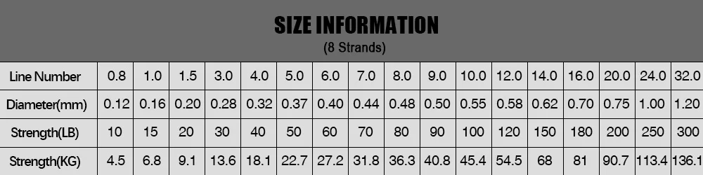 El número de línea no es el diámetro, verifique la información detallada del tamaño antes de realizar el pedido. Cualquier duda, póngase en contacto con nosotros. Gracias