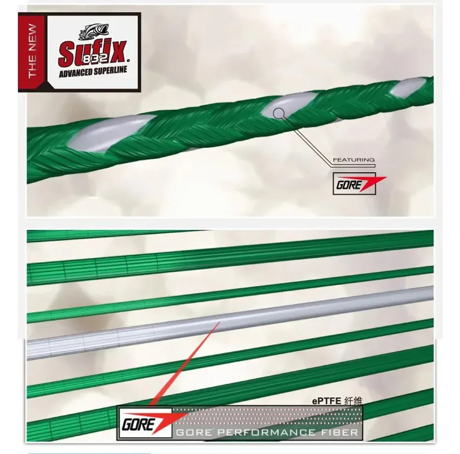 Hilo de pescar trenzado Sufix 832, longitud: 120m/130yds, diámetro: 0,1mm-0,42mm, tamaño: 13-86lb PE Power linha multifilamento