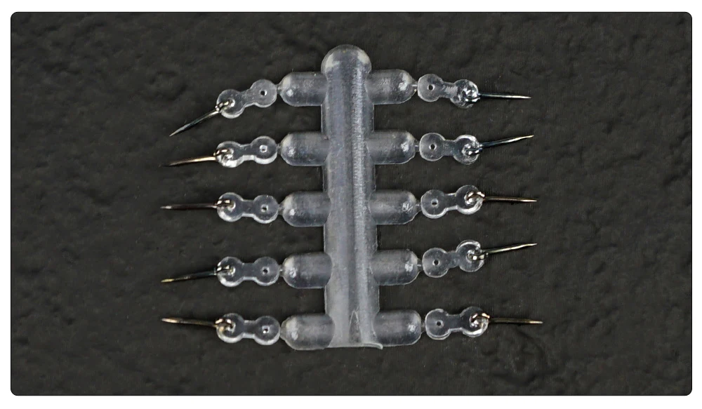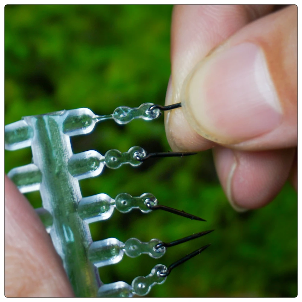 Se pueden asegurar dos púas para sujetar el cebo firmemente.Especificaciones: Color: Negro